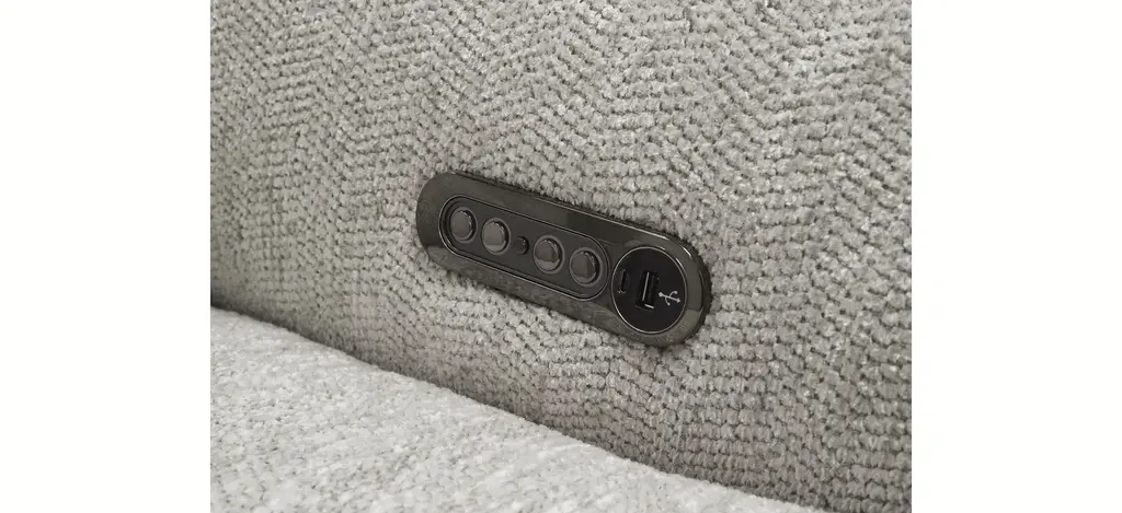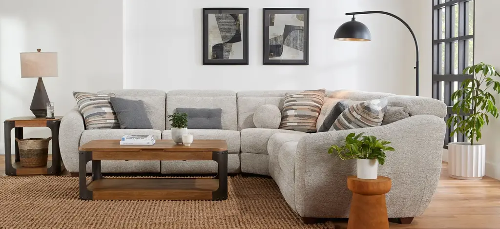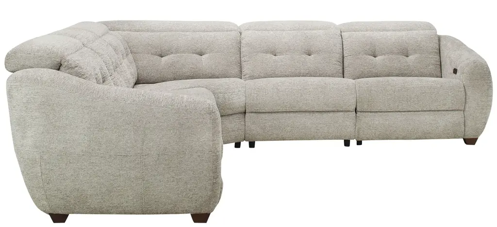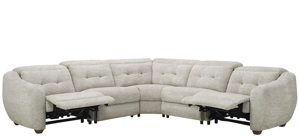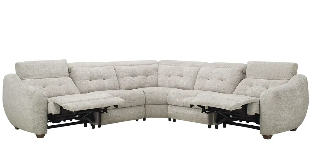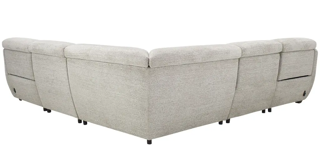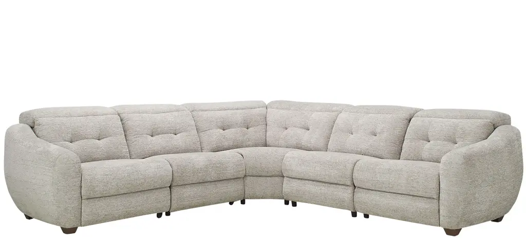 The pleasing lines and soft neutral fabric of the Carson 5-pc. power sectional beckon you to blissful, easy comfort. You'll be on cloud nine with its oversized, rounded silhouette, unique angles and retro vibe. Essential power features keep it grounded in functionality and an array of cool accent pillows-including a fleecy ball-are simply delightful.