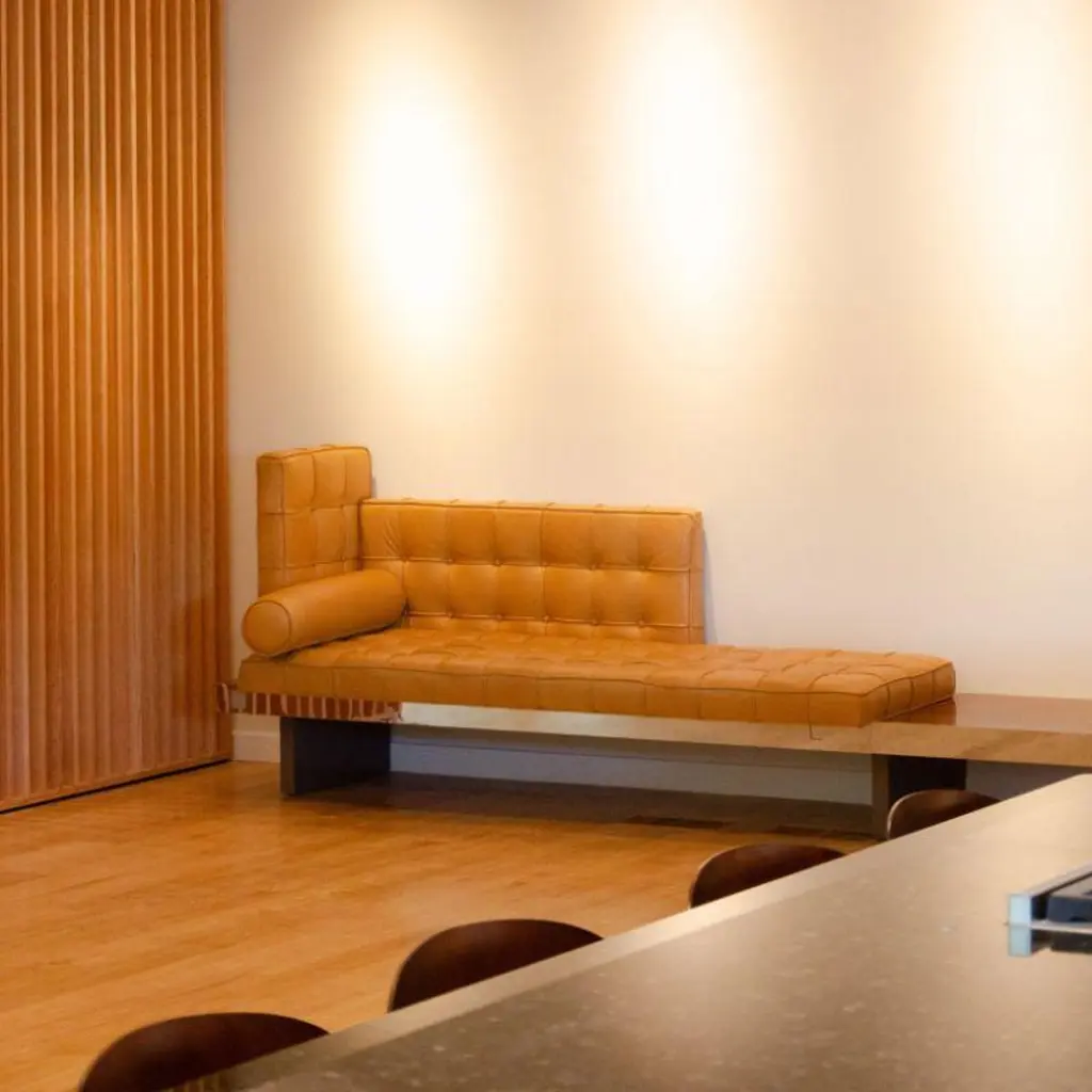 Listed for sale is an original custom daybed/sofa designed by Philippe Starck for the SLS Hotel in Beverly Hills and produced by Cassina of Italy (the renowned manufacturer of pieces such as Le Corbusier's designs).This example is made up of a long and robust 2-piece bench, with upholstered cushions on one side (I have both left and right orientations). The entirety of this piece is covered in palisander/rosewood with a polished stainless steel edging to the edge faces. Condition is very good to excellent. There is some wear.The cushions are constructed from soft high quality leather hides chosen by Cassina. These exclusive custom pieces were built only for the SLS Hotel and are therefore exceptionally rare.There is also a plaque on them that list Starck, SLS, and Cassina Contract.I do have a few (but limited) quantity of these available, so do let me know in the case you're interested in multiple pieces.The pieces vary somewhat in length. Some examples are 138 inches in length, whereas others are 148 inches in length. Do feel free to let me know if you would prefer shorter or longer.