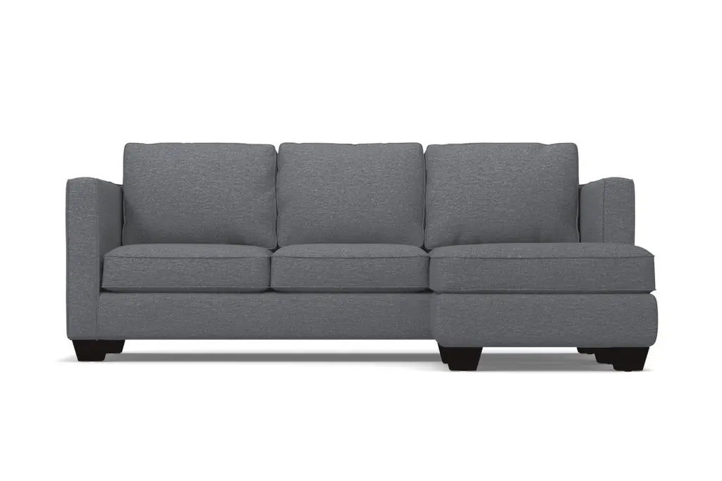 Catalina Reversible Chaise Sofa – Made in the USA – The Catalina Sofa (81"w x 63"d x 34"h) brings relaxed West Coast style with the versatility of a fully reversible chaise that attaches to either side for flexible layouts. Built with an eco-friendly solid wood frame, this sofa is custom made in the USA and finished with plush, high-density foam cushions wrapped in hypoallergenic, breathable fabrics. Choose from poly-blends, microfiber, linen, or basket weave upholstery in a wide range of colors to suit your style. Zippered, removable cushion covers make cleaning easy, while high track arms and wooden feet give the design a timeless profile. Fits doorways 24" wide (with legs off). Backed by a limited lifetime warranty, plus free delivery and 60-day returns.