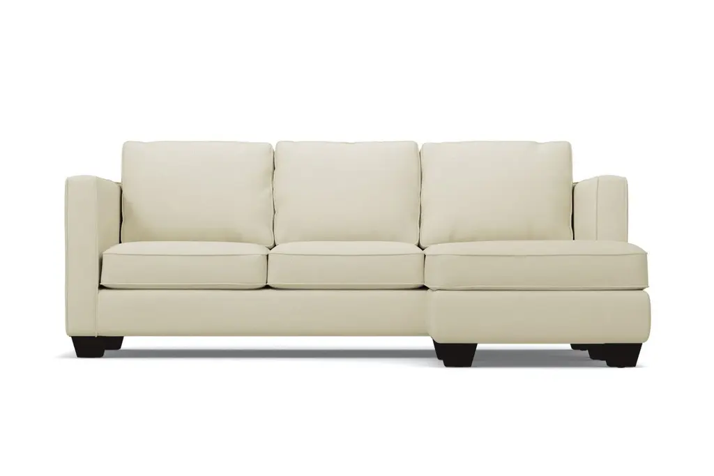 Catalina Reversible Chaise Sofa – Made in the USA – The Catalina Sofa (81"w x 63"d x 34"h) brings relaxed West Coast style with the versatility of a fully reversible chaise that attaches to either side for flexible layouts. Built with an eco-friendly solid wood frame, this sofa is custom made in the USA and finished with plush, high-density foam cushions wrapped in hypoallergenic, breathable fabrics. Choose from poly-blends, microfiber, linen, or basket weave upholstery in a wide range of colors to suit your style. Zippered, removable cushion covers make cleaning easy, while high track arms and wooden feet give the design a timeless profile. Fits doorways 24" wide (with legs off). Backed by a limited lifetime warranty, plus free delivery and 60-day returns.