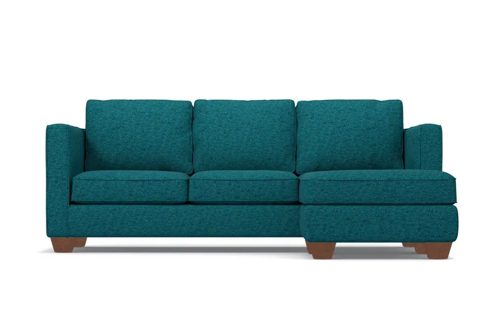 Catalina Reversible Chaise Sofa – Made in the USA – The Catalina Sofa (81"w x 63"d x 34"h) brings relaxed West Coast style with the versatility of a fully reversible chaise that attaches to either side for flexible layouts. Built with an eco-friendly solid wood frame, this sofa is custom made in the USA and finished with plush, high-density foam cushions wrapped in hypoallergenic, breathable fabrics. Choose from poly-blends, microfiber, linen, or basket weave upholstery in a wide range of colors to suit your style. Zippered, removable cushion covers make cleaning easy, while high track arms and wooden feet give the design a timeless profile. Fits doorways 24" wide (with legs off). Backed by a limited lifetime warranty, plus free delivery and 60-day returns.