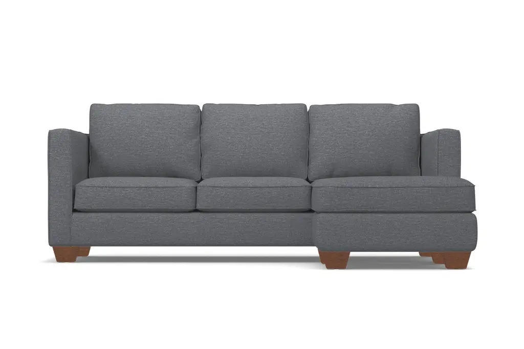 Catalina Reversible Chaise Sofa – Made in the USA – The Catalina Sofa (81"w x 63"d x 34"h) brings relaxed West Coast style with the versatility of a fully reversible chaise that attaches to either side for flexible layouts. Built with an eco-friendly solid wood frame, this sofa is custom made in the USA and finished with plush, high-density foam cushions wrapped in hypoallergenic, breathable fabrics. Choose from poly-blends, microfiber, linen, or basket weave upholstery in a wide range of colors to suit your style. Zippered, removable cushion covers make cleaning easy, while high track arms and wooden feet give the design a timeless profile. Fits doorways 24" wide (with legs off). Backed by a limited lifetime warranty, plus free delivery and 60-day returns.