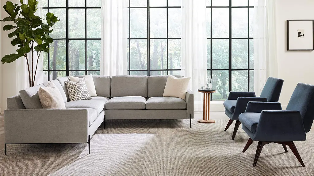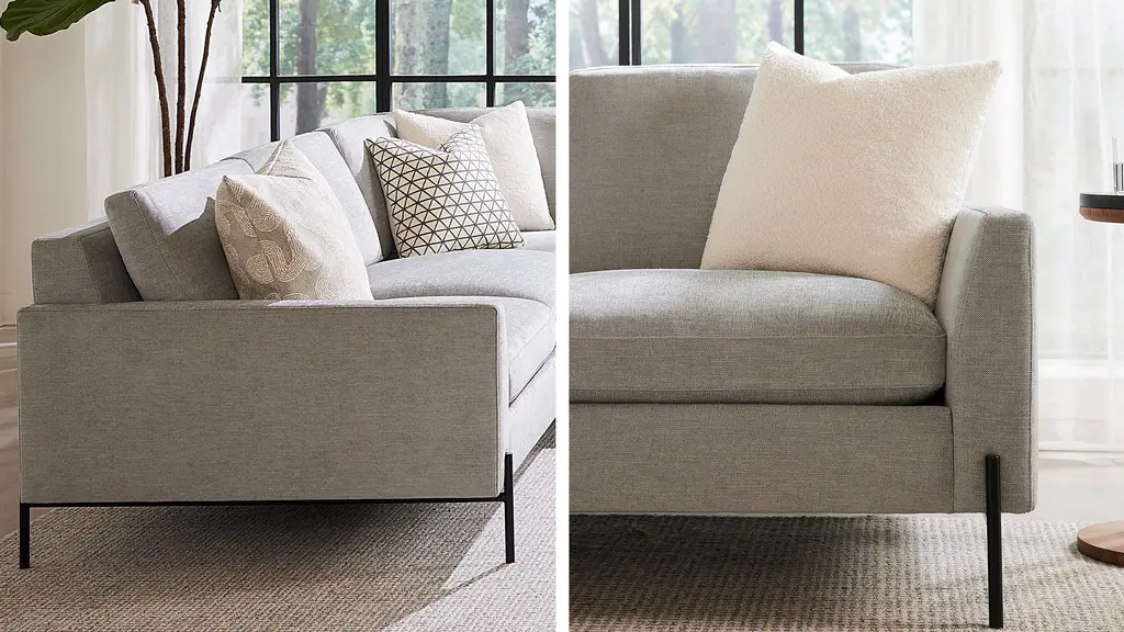DESIGN Clear the runway for the Catwalk Sectional! Modestly scaled with a comfortably deep seat, Catwalk marries the best of mid-century design with modern styling. Subtly shaped arms and gorgeous stiletto legs give this collection a fresh update while paying homage to the elegance of mid-century simplicity. Handcrafted in the USA. FEATURES Solid Foundation: Our frames are constructed from precision-cut, FSC-certified engineered wood for unmatched strength and stability, featuring reinforced, interlocking joinery for added durability. Customizable Cushion Options:Choose from standard or down alternative cushions. Standard cushions offer our most supportive sit and a sleek, tailored look that requires minimal fluffing. These cushions feature high-quality, high-resiliency CertiPUR-US® foam core seats wrapped in premium fiber with foam-filled back cushions. Down alternative cushions deliver our most relaxed yet supportive sit, with a more casual look that requires moderate fluffing. These cushions feature high-quality, high-resiliency CertiPUR-US® foam core seats wrapped in plush down-alternative fiber, with premium down-alternative-filled back cushions. CertiPur-US® foam is held to the highest standards of product safety and durability, so you can rest easy. Supportive Webbing Suspension: Designed to maximize comfort, our premium webbing system provides a resilient foundation. Customizable Upholstery: Choose from a vast selection of durable premium and performance fabrics and genuine Italian leather to personalize your Catwalk Sectional's look.