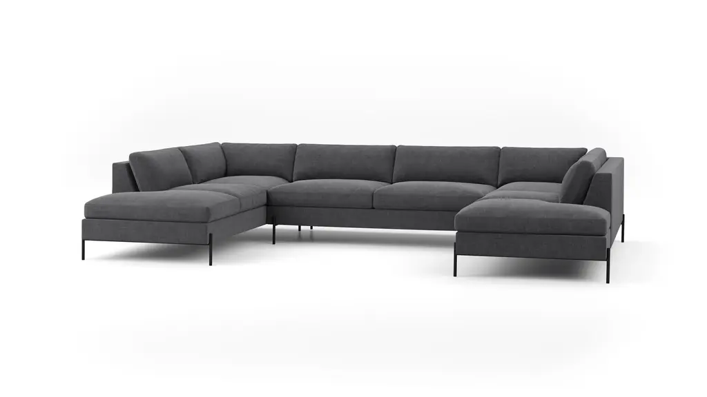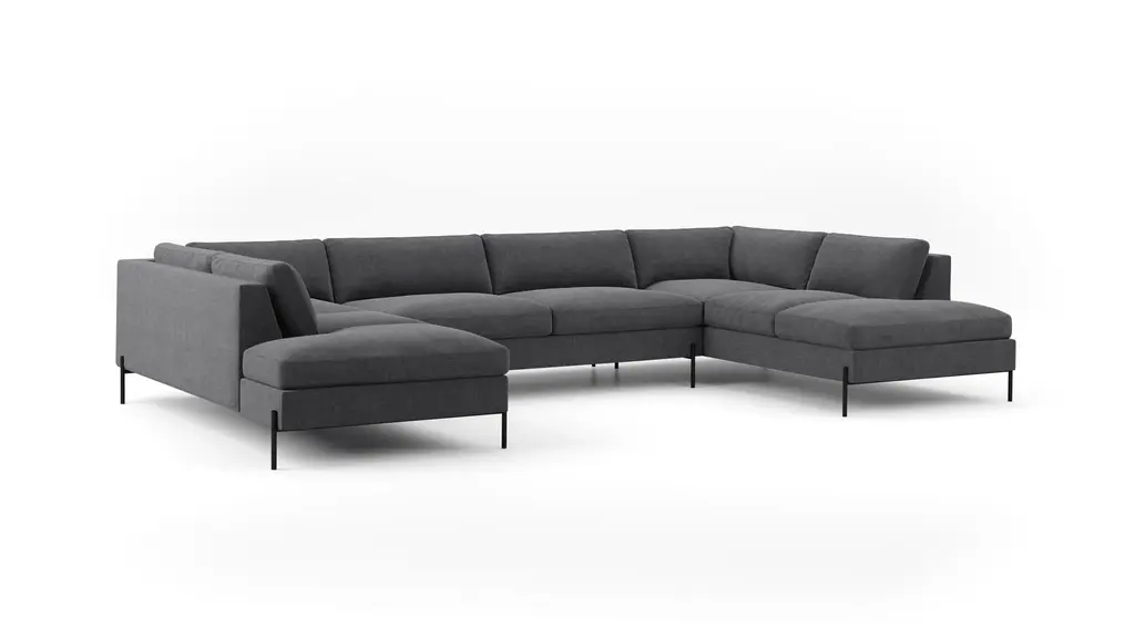 DESIGN Clear the runway for the Catwalk U-Shaped Bumper Sectional! Modestly scaled with a comfortably deep seat, Catwalk marries the best of mid-century design with modern styling. Subtly shaped arms and gorgeous stiletto legs give this collection a fresh update while paying homage to the elegance of mid-century simplicity. Handcrafted in the USA. FEATURES Solid Foundation: Our frames are constructed from precision-cut, FSC-certified engineered wood for unmatched strength and stability, featuring reinforced, interlocking joinery for added durability. Customizable Cushion Options:Choose from standard or down alternative cushions. Standard cushions offer our most supportive sit and a sleek, tailored look that requires minimal fluffing. These cushions feature high-quality, high-resiliency CertiPUR-US® foam core seats wrapped in premium fiber with foam-filled back cushions. Down alternative cushions deliver our most relaxed yet supportive sit, with a more casual look that requires moderate fluffing. These cushions feature high-quality, high-resiliency CertiPUR-US® foam core seats wrapped in plush down-alternative fiber, with premium down-alternative-filled back cushions. CertiPur-US® foam is held to the highest standards of product safety and durability, so you can rest easy. Supportive Webbing Suspension: Designed to maximize comfort, our premium webbing system provides a resilient foundation. Customizable Upholstery: Choose from a vast selection of durable premium and performance fabrics and genuine Italian leather to personalize your Catwalk U-Shaped Bumper Sectional's look.