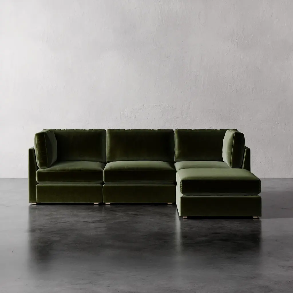 The Chanaux Collection draws on the sculptural clarity of mid-century master Milo Baughman, offering a balanced interplay of soft containment. Modular shapes fill a rigorous frame, forming an elevated sensual experience. Comfort, composed.Designed as a multi-piece seating composition, the Chanaux Sofa's deep seats and tailored cushioning creates visual rhythm in a media room, lounge, or open floorplan. Modules can be configured into chaise, corner, or extended sectional arrangements to suit the architecture of the space.Handcrafted by skilled artisans in North Carolina, The Chanaux pays homage to traditional upholstery methods.