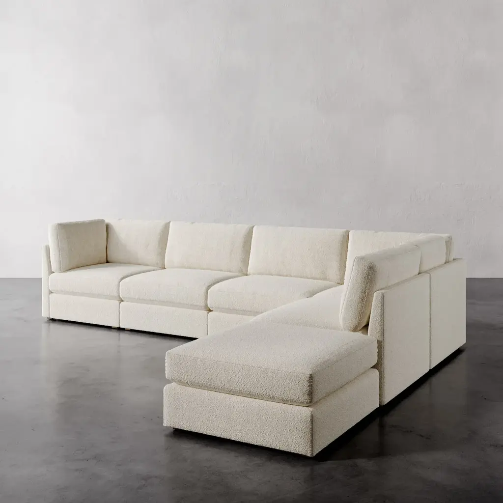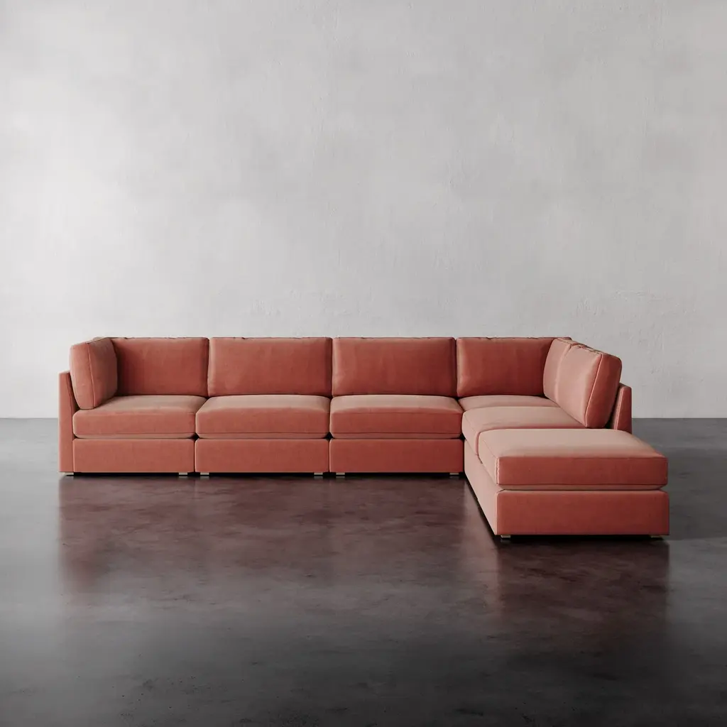 The Chanaux Collection draws on the sculptural clarity of mid-century master Milo Baughman, offering a balanced interplay of soft containment. Modular shapes fill a rigorous frame, forming an elevated sensual experience. Comfort, composed.Designed as a multi-piece seating composition, the Chanaux Sofa's deep seats and tailored cushioning creates visual rhythm in a media room, lounge, or open floorplan. Modules can be configured into chaise, corner, or extended sectional arrangements to suit the architecture of the space.Handcrafted by skilled artisans in North Carolina, The Chanaux pays homage to traditional upholstery methods.