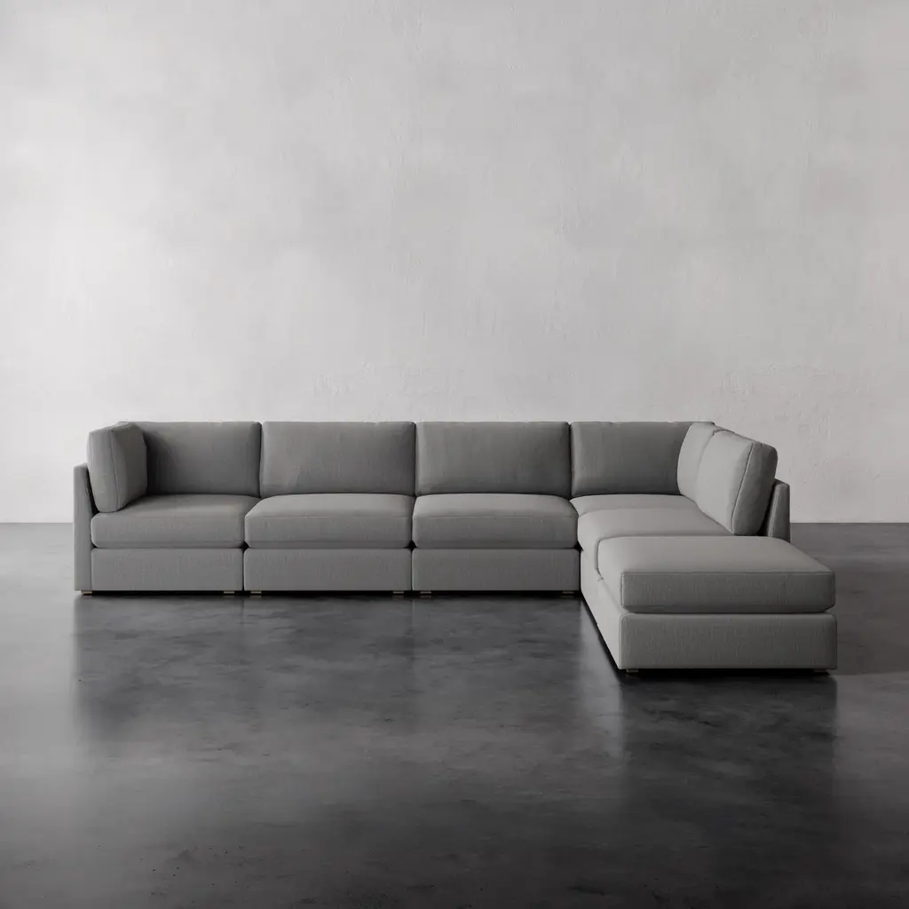 The Chanaux Collection draws on the sculptural clarity of mid-century master Milo Baughman, offering a balanced interplay of soft containment. Modular shapes fill a rigorous frame, forming an elevated sensual experience. Comfort, composed.Designed as a multi-piece seating composition, the Chanaux Sofa's deep seats and tailored cushioning creates visual rhythm in a media room, lounge, or open floorplan. Modules can be configured into chaise, corner, or extended sectional arrangements to suit the architecture of the space.Handcrafted by skilled artisans in North Carolina, The Chanaux pays homage to traditional upholstery methods.