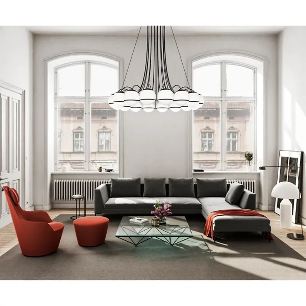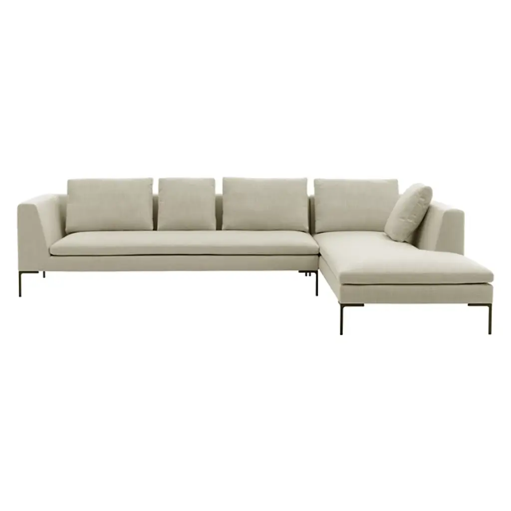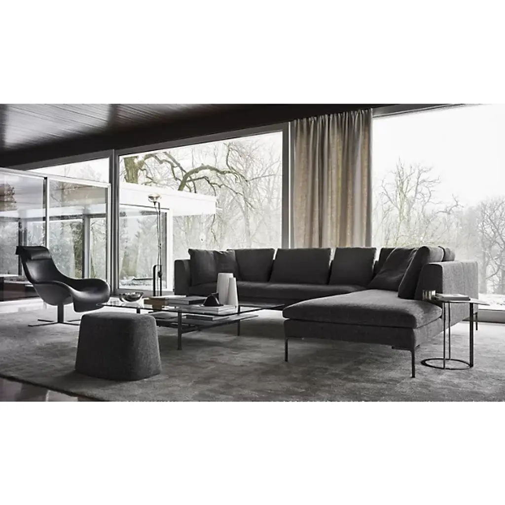 The Charles Right Arm Sectional Sofa from B&B Italia is a contemporary design icon that has long endured thanks to its clean, open, and inviting composition. Designer Antonio Citterio's pieces are built on pure, fundamental shapes. The simple L-shape sits gracefully atop the sofa's die-cast aluminum legs. The sturdy framework above lends itself to a formal appearance in its low-profile silhouette. The eyes are drawn to the armrests that angle sharply with tapering shapes.