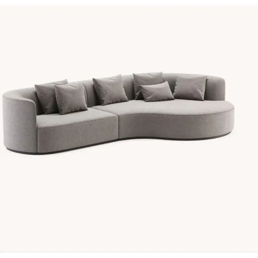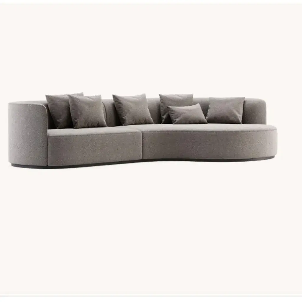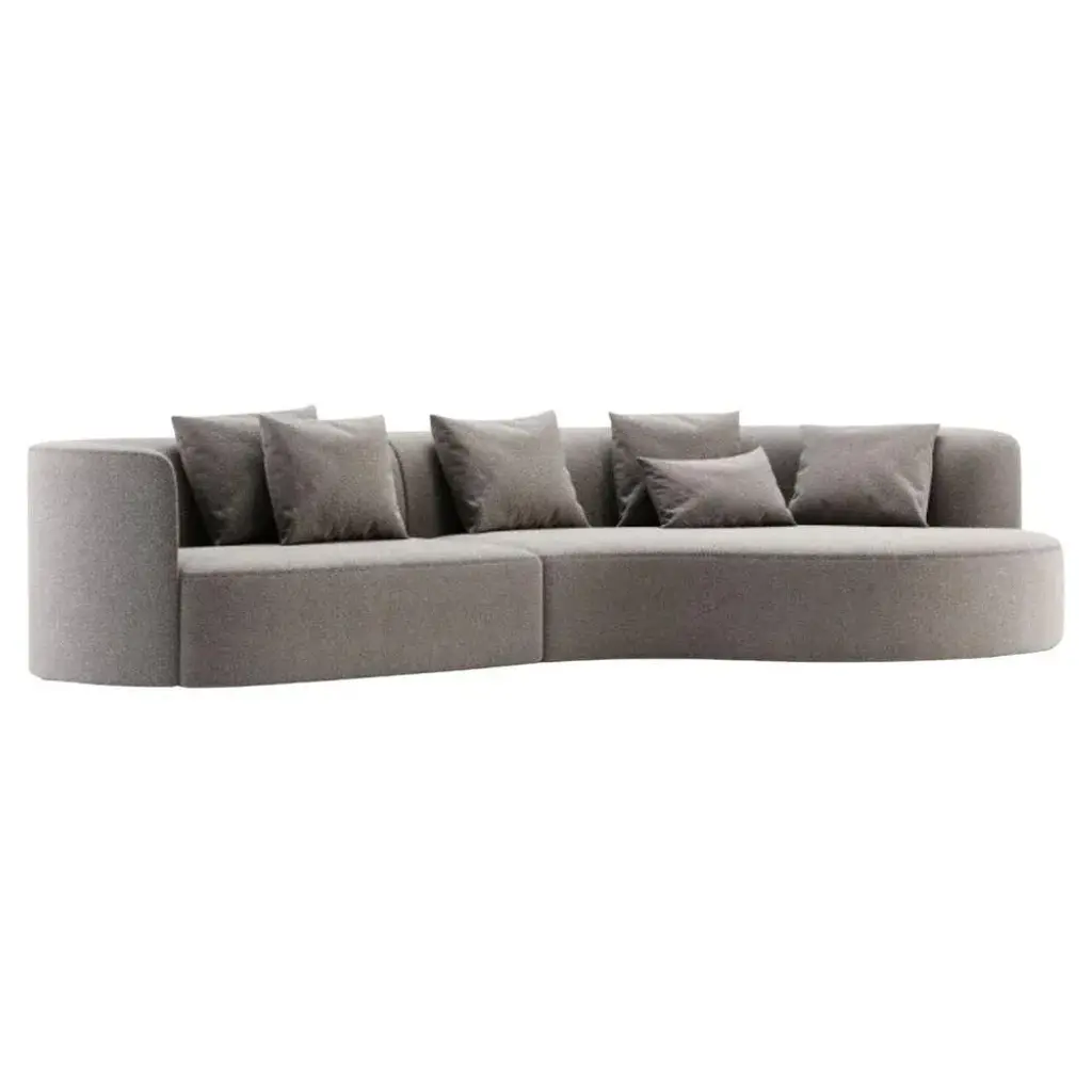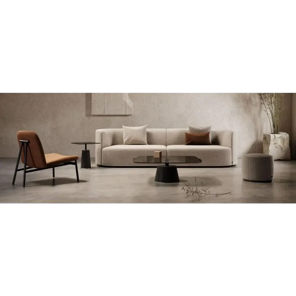 Chloe chaise sofa by domkapa materials: bouclé (columbia taupe), black ash. Dimensions: w 350 x d 180 x h 75.5 cm. Available separately in different materials. chloe is an outstanding design piece with striking aesthetic balance and refined materials. Available in two-seater, three-seater, and chaise-longue versions, it stars a wooden or metallic base and upholstered seat and backrest that can elevate any room. A stitched line is dividing the piece for easy assembling and transport while double-top stitching is seen across the sofa for a luxury touch.