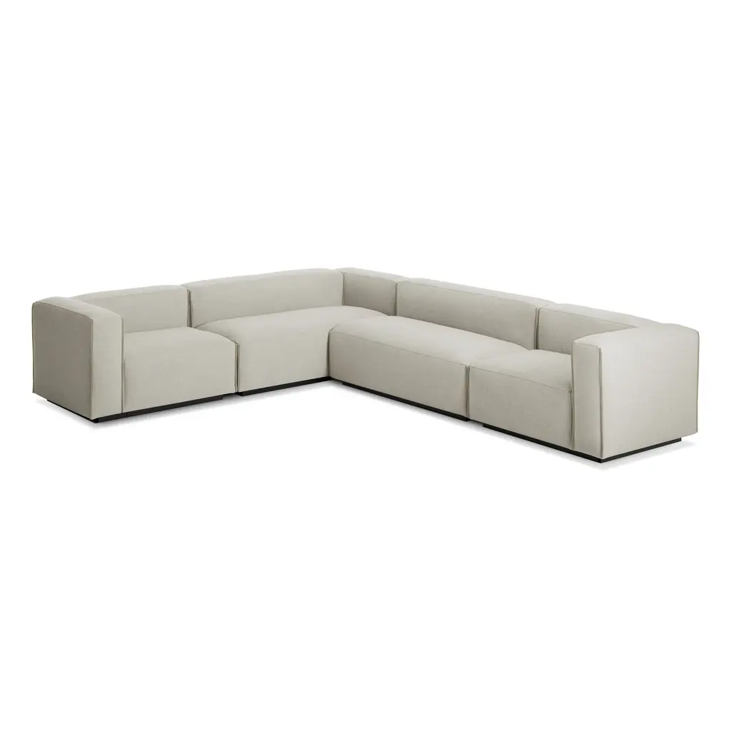 Noncommittal? No problem. Cleon's three modular pieces are designed to let you configure and reconfigure your own perfect seating solution. Stick with your favorite or switch it up. These upholstered components can be connected to create multiple size and shape possibilities. Down-filled cushions contrast stitching and gentle pleating at the seams round out the package. Features