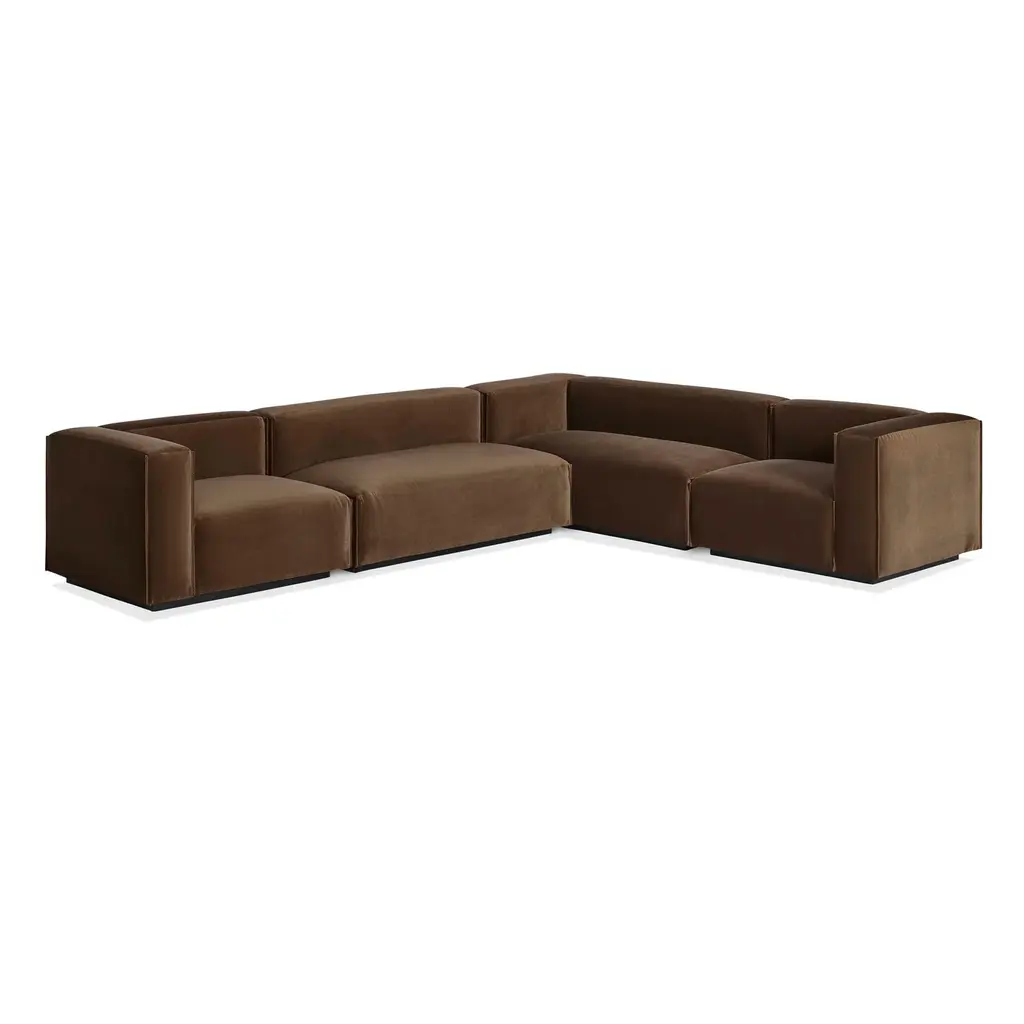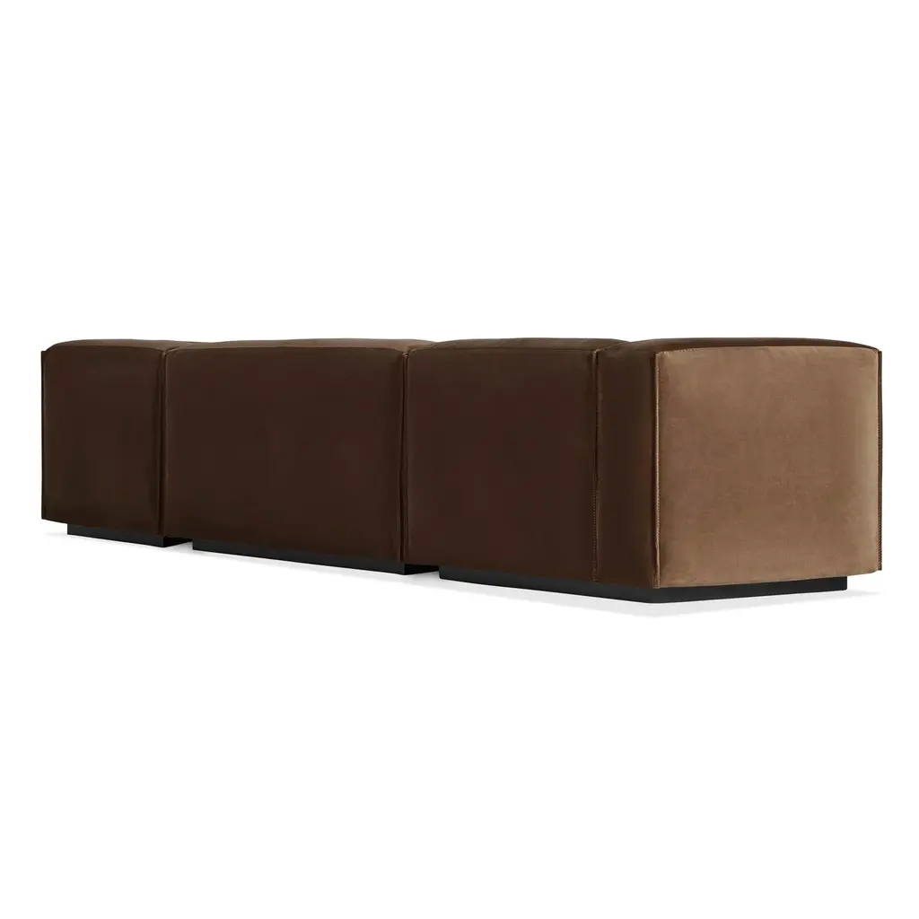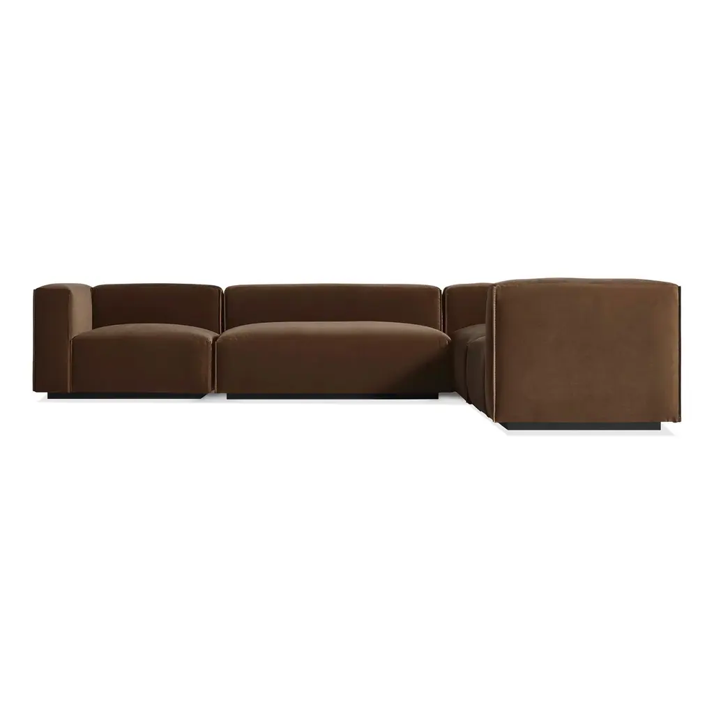 Cleon’s modular pieces are designed to let you configure and reconfigure your own perfect seating solution. These upholstered components can be connected to create multiple size and shape possibilities. Zig-zag stitching detail and gentle pleating at the seams round out the package.