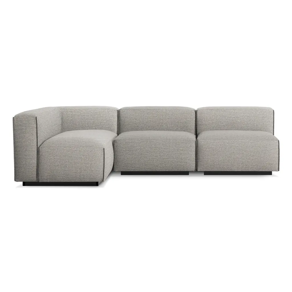 Noncommittal? No problem. Cleon's three modular pieces are designed to let you configure and reconfigure your own perfect seating solution. Stick with your favorite or switch it up. These upholstered components can be connected to create multiple size and shape possibilities. Down-filled cushions contrast stitching and gentle pleating at the seams round out the package. Features