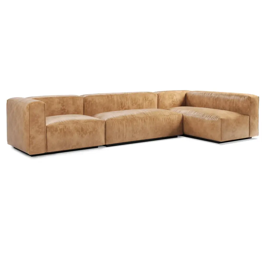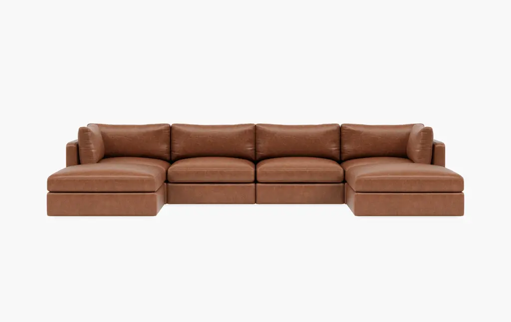 Cleon’s modular pieces are designed to let you configure and reconfigure your own perfect seating solution. These upholstered components can be connected to create multiple size and shape possibilities. Zig-zag stitching detail and gentle pleating at the seams round out the package.
