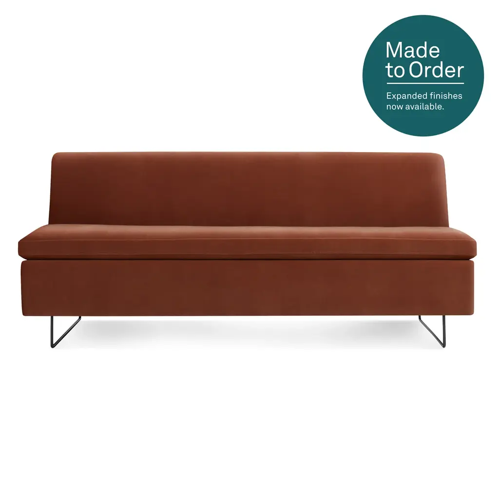 Elevate your living room with the tailored beauty of the Clyde Sofa from Blu Dot. Boasting a low profile, the soft, supportive padding and tight back ensure total comfort when seated. Supported by sleek black steel legs, pair it with the Bonnie Sofa to create a luxurious sectional that works beautifully in any room. Highlights