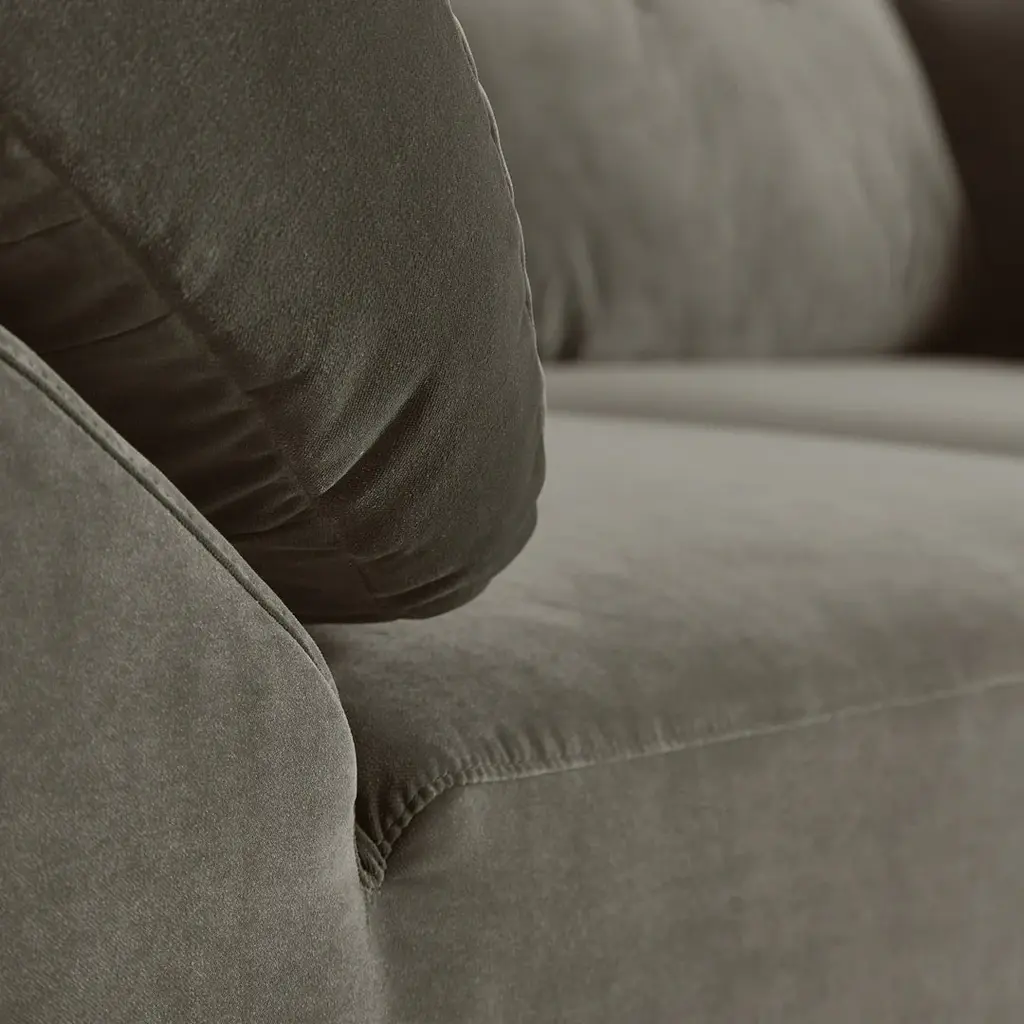 Using voluminous curves and askew-arranged back cushions, Collar reinterprets classic sofa design into a contemporary appealing appearance. Delta shaped sides perfectly support the cushion in a wide-angle. Combined with the low backrest, the continuous back cushion functions as a collar and when sinking into the carefully selected soft memory foam you achieve the feeling of a soft hug. The sectional includes: 1 x 3-seater, 1 x open end left (arm right) and 3 x cushions in the same fabric as the sofa.