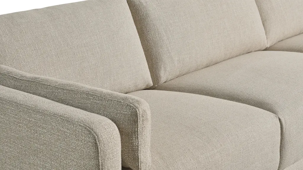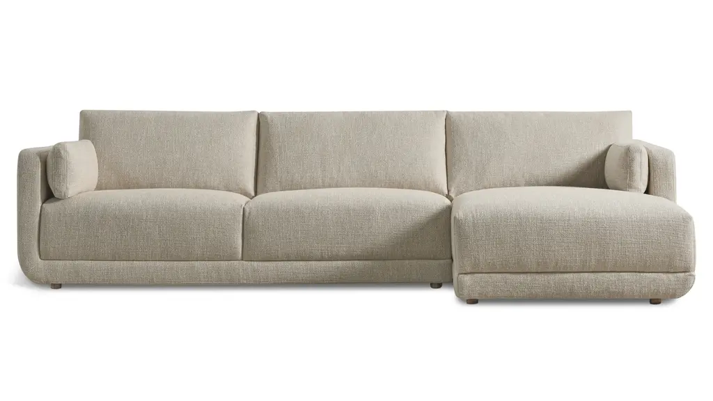 Modern and fresh, yet cozy and welcoming. The Come Around Sectional has our signature gentle rounded corners on the base, giving it a warm look. And, fixed seat cushions give this piece a neat, clean structure.