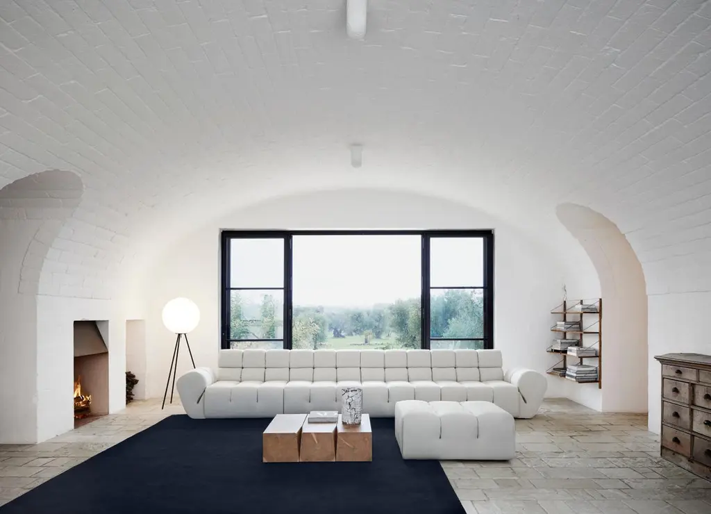 Sectional sofa palmo by Amura Lab Designer: Emanuel GarganoModel shown: Textile - Leather Nabuck 19Inspired by the natural gesture of an opening hand, Palmo is the new living concept designed by Emanuel Gargano.The leather folds become the exceptional characteristics of its embracing nature, as an unmistakable sign that takes us back to the roots of our history.The modular elements design the space, taking turns the most Classic shapes to the most irregular and free compositions, while the embracing padding softness recalls his warm nature that is always ready to host in the intimacy of its shapes.Not a simple sofa, but a new and deeper interpretation which aims to give back to the living, its primary function inside the houses in its form and concept.Emanuel Gargano was born in Assisi, Italy, where he received his creative training and where he is still based. After his studies in Urbino, he gathered international professional experience in London and NewYork. Today his professional life is divided between his office in London and his workshop in Assisi. He has designed for major Italian design companies and received numerous international awards, such as the Red Dot Design Award, the Good Design Award, the German Design Award and the Compasso d’Oro.