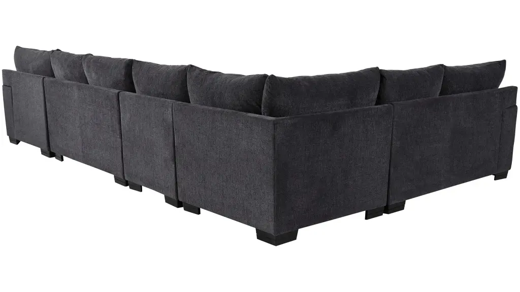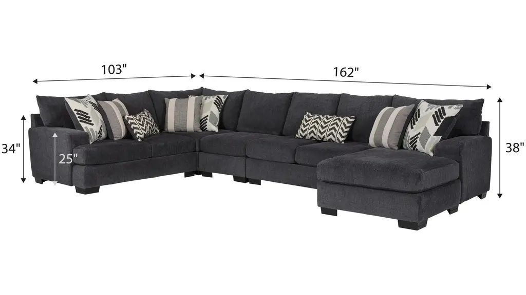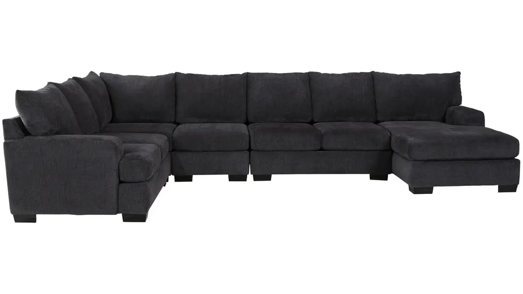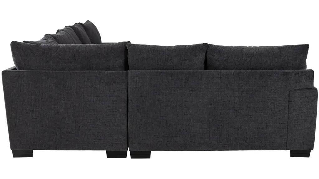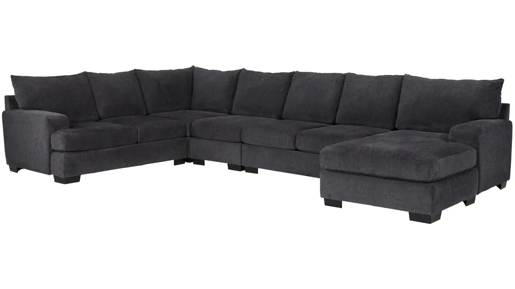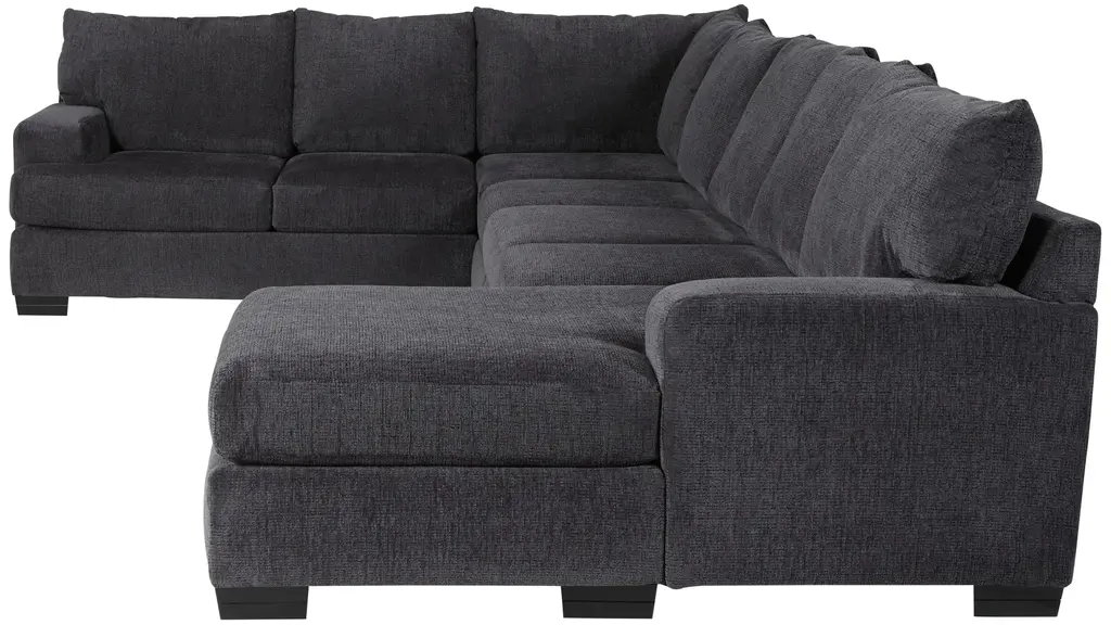 The Cooper sectional offers up versatile comfort and durability with an easygoing silhouette that complements any casual setting. Wide track arms, deep cushions, and generous seating space invite family and friends to sit back, curl up, and stay a while. The charcoal color and ebony feet give it a bit of modern rustic flair that easily updates your style quotient.