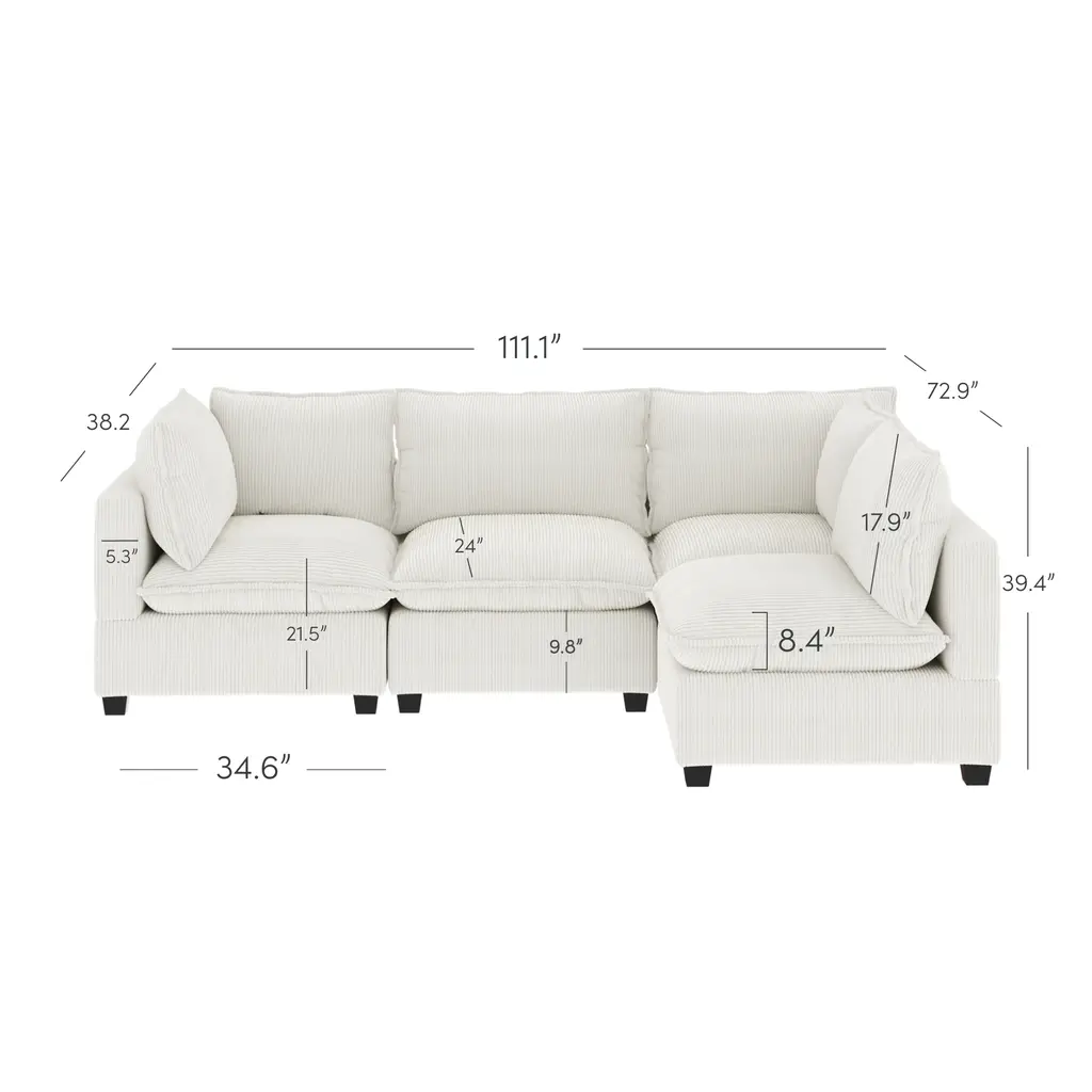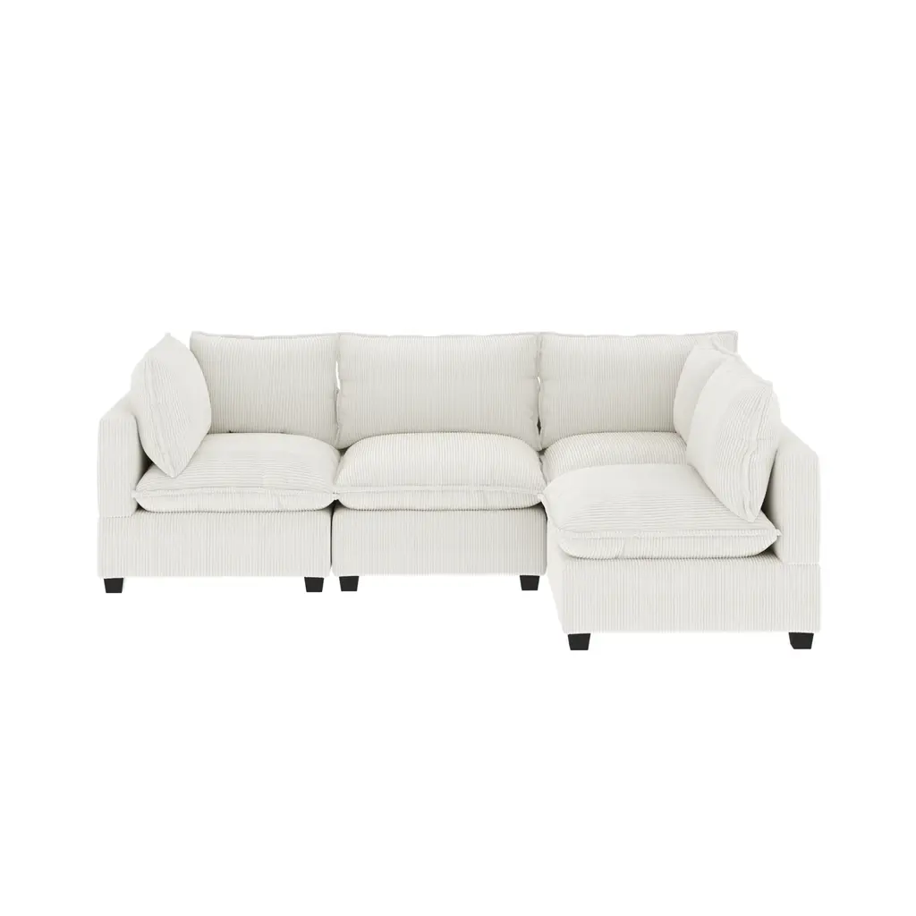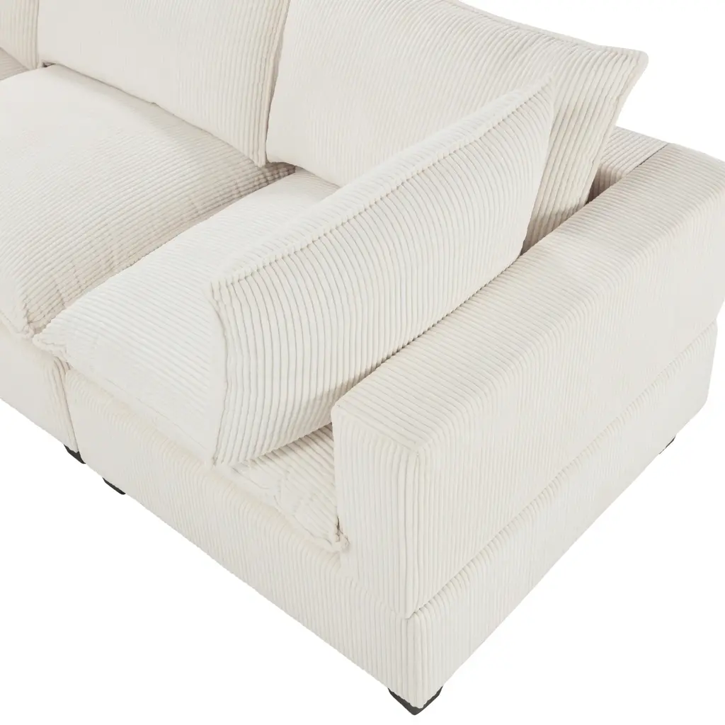 Corduroy 4-Seat Cloud Armless Sectional Sofa Couch Pearl White