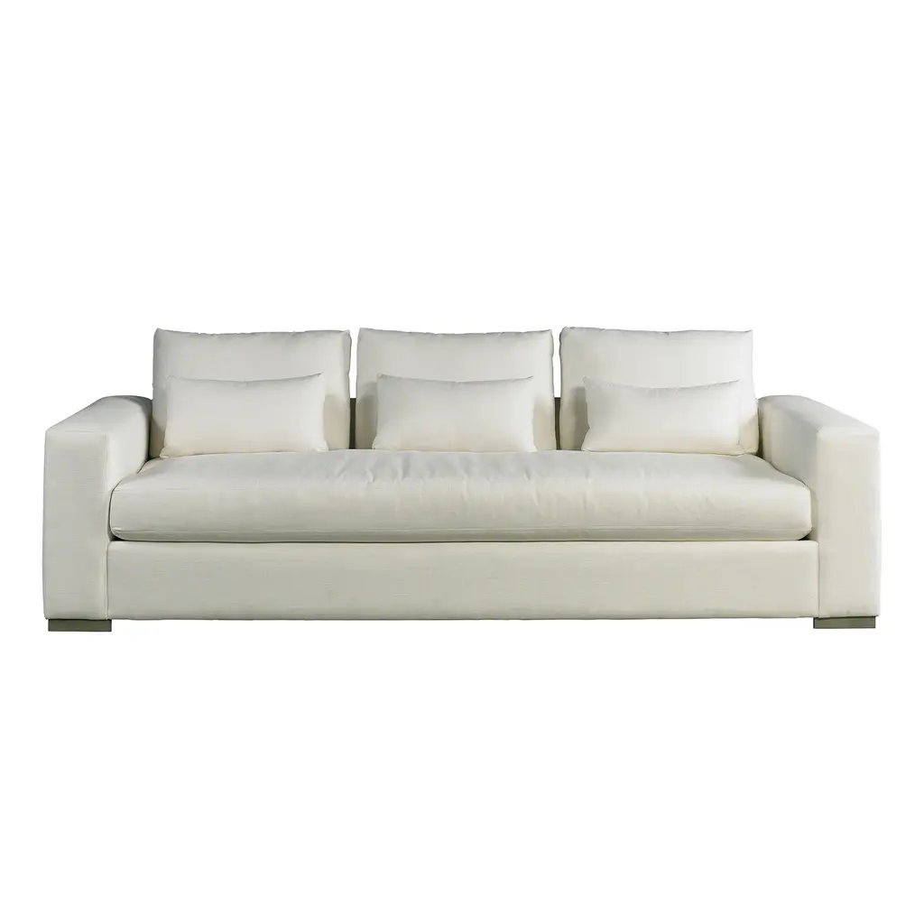 The Corso collection also includes a chair (sold separately). Ships In 8-10 Weeks Three 24" x 14" kidney pillows (deep seating model only) Three loose back pillows One bench cushion As Shown Fabric: Affinity White As Shown Finish: Mineral If you choose to purchase COM, once you have placed your order a customer service rep will contact you regarding where to send your fabric. Please note that current lead time is 17-19 weeks once your fabric arrives at the factory, and if unused fabric is under 1.5 yards, it cannot be sent back to you.This product can be special ordered in additional fabrics, leathers, finishes, and cushion fillings. Click here to email us for for additional information about special ordering.This image is for illustrative purposes only. The colors shown are accurate within the constraints of lighting, photography, and the color accuracy of your screen.