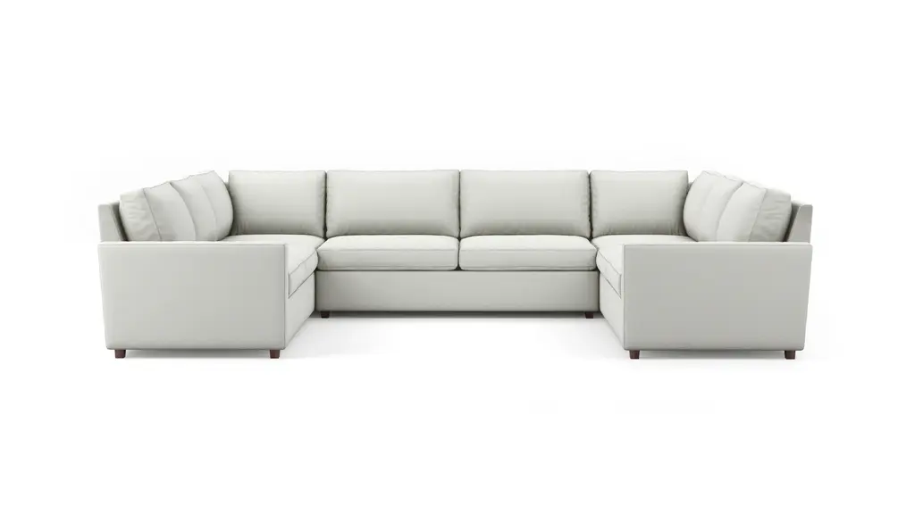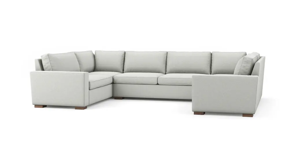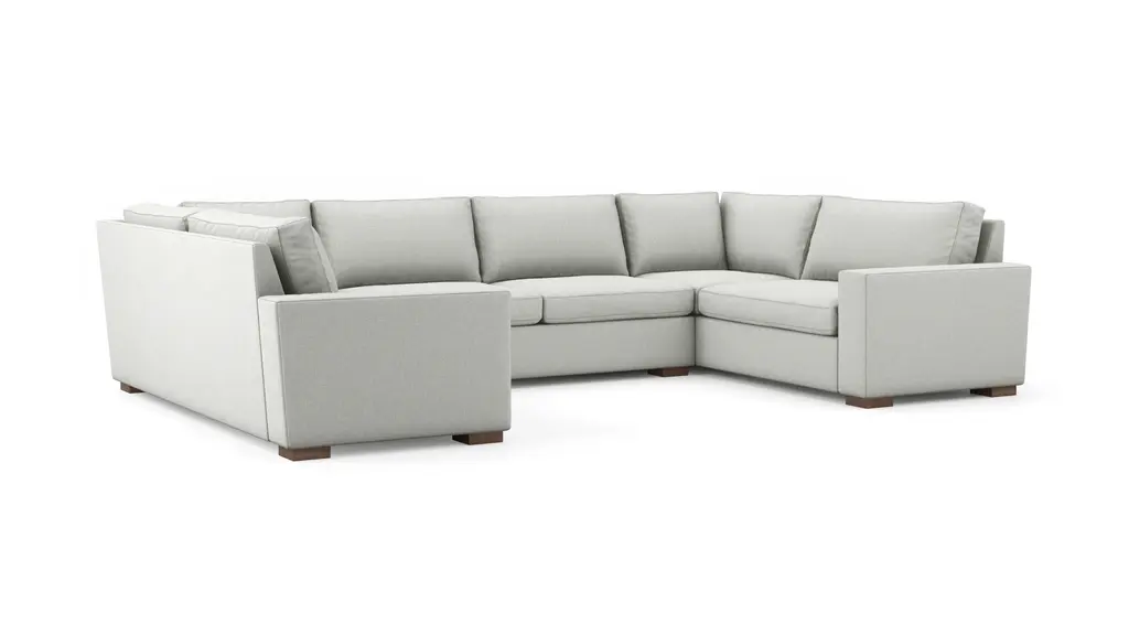 DESIGN Being a couch potato has never looked so good! Couch Potato is relaxed, refined and an absolute classic. Simple lines and floor-hugging height evokes a more traditional profile, while ultra plush back pillows and impeccable tailoring makes it current and sophisticated. Grab a snack, start a marathon, and lean into being a couch potato. Handcrafted in the USA. FEATURES Solid Foundation: Our frames are constructed from precision-cut, FSC-certified engineered wood for unmatched strength and stability, featuring reinforced, interlocking joinery for added durability. Customizable Cushion Options:Choose from standard or down alternative cushions. Standard cushions offer our most supportive sit and a sleek, tailored look that requires minimal fluffing. These cushions feature high-quality, high-resiliency CertiPUR-US® foam core seats wrapped in premium fiber with foam-filled back cushions. Down alternative cushions deliver our most relaxed yet supportive sit, with a more casual look that requires moderate fluffing. These cushions feature high-quality, high-resiliency CertiPUR-US® foam core seats wrapped in plush down-alternative fiber, with premium down-alternative-filled back cushions. CertiPur-US® foam is held to the highest standards of product safety and durability, so you can rest easy. Supportive Webbing Suspension: Designed to maximize comfort, our premium webbing system provides a resilient foundation. Customizable Upholstery: Choose from a vast selection of durable premium and performance fabrics and genuine Italian leather to personalize your Couch Potato U-Shaped Sectional's look.