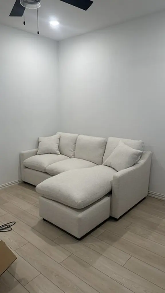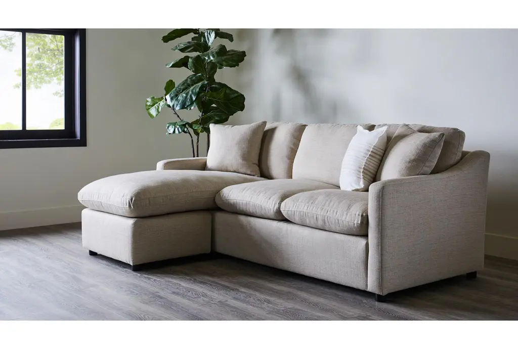 The Cozy Beige Linen Fabric 84" Sofa with Reversible Chaise is perfect for adding comfort and style to your living room. Featuring a soft, cloud-like feel and slope arms, this sectional is ideal for lounging and relaxing. Its modular design allows you to configure the reversible chaise to suit your space and needs.