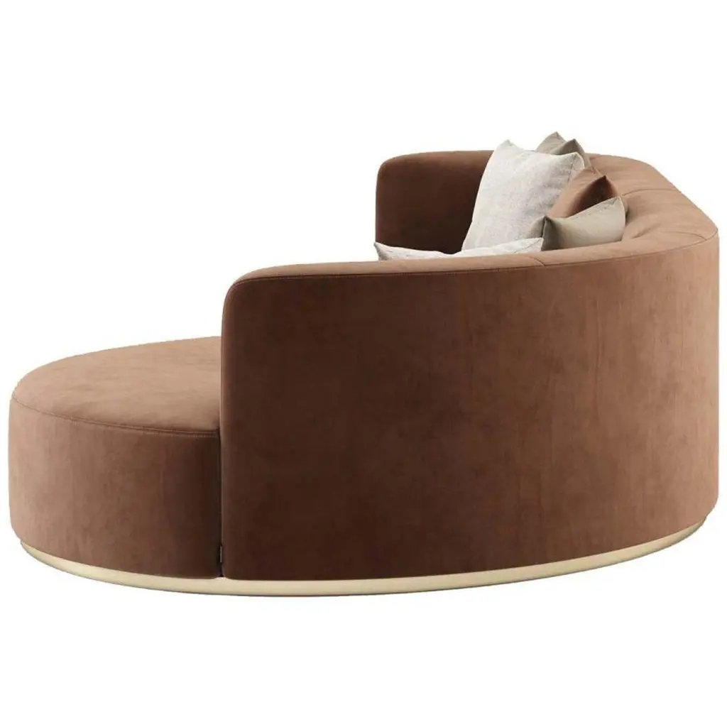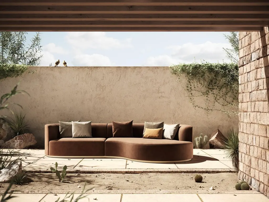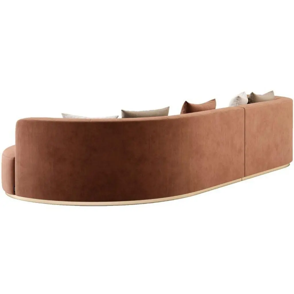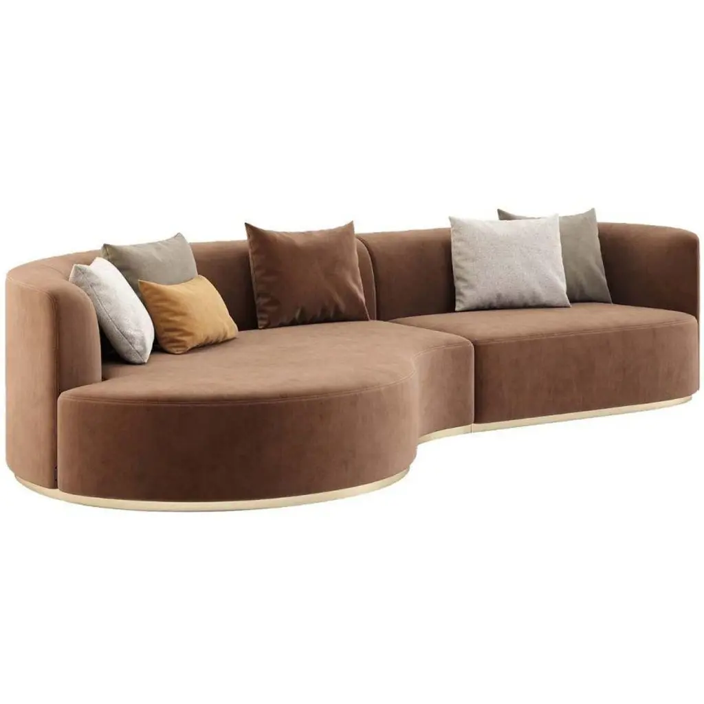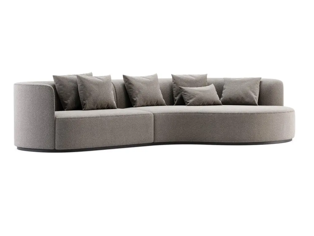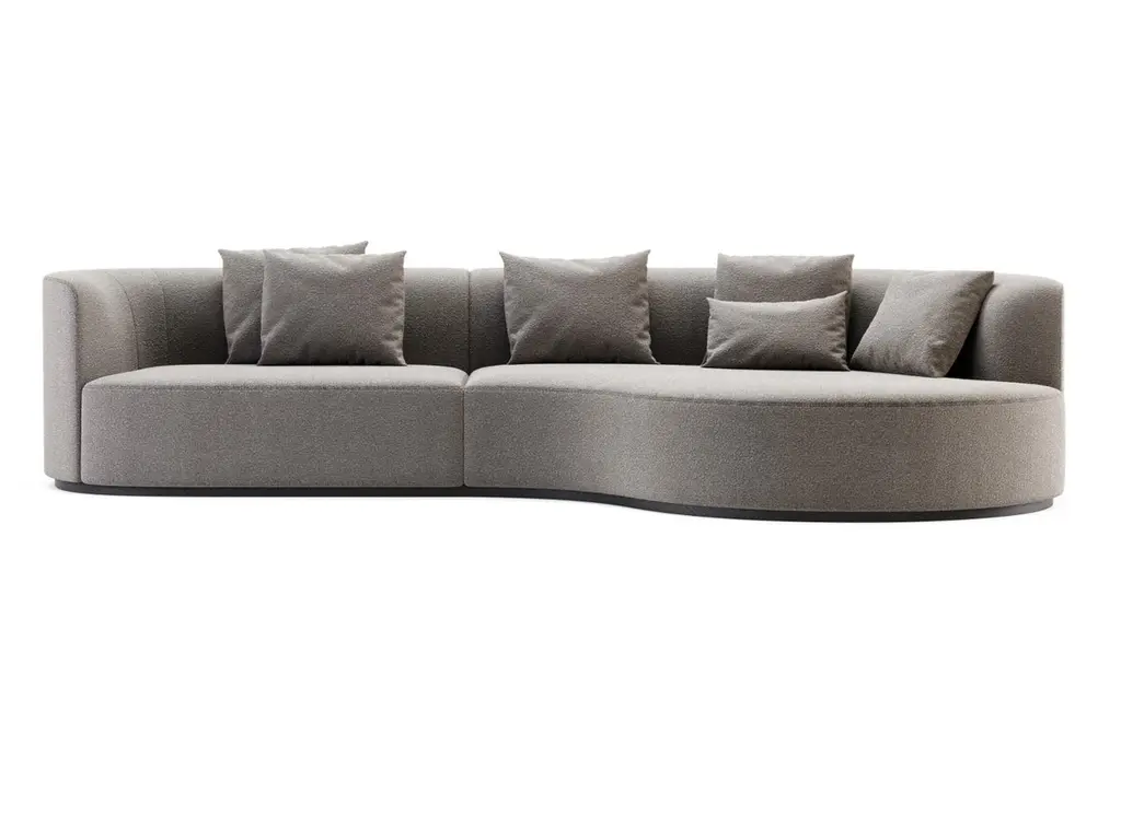 Made to order sofa with deep curved chaise offered in a selection of luxurious performance soft fabric. The base is offered in metal or wood in several colors and finishes.The metal is polished or brushed stainless steel in several colors.The wood is in several veneer colors or in matte lacquer colors.See attached photo for fabric, wood and metal colors.Advanced comfort spring suspension. Fixed seat cushion and back with premium polyurethane medium density foam.Available in COM / COL upon request. Please contact us for COM/COL instructions and shipping details.Required COM: 16 yardWe do our best to expedite production and to ship and deliver product within the listed lead time, however current lead times might be longer due to global shipping backlog and delays. These delays are out of our control and cannot be a reason to cancel an order.Our pricing includes all costs for international shipping to the U.S., as well as duties and customs clearance fees. Please be aware that local delivery within the U.S. is not included. We offer white glove, front door, and warehouse delivery options. For shipments outside the U.S., kindly reach out to us for a detailed quote.