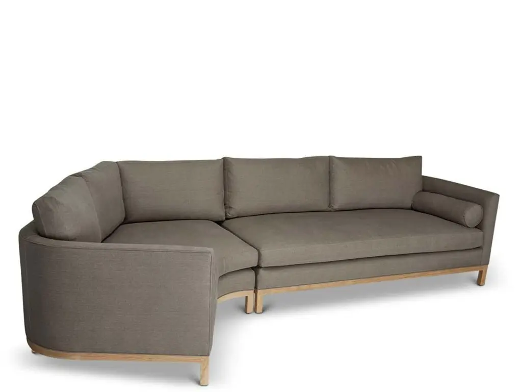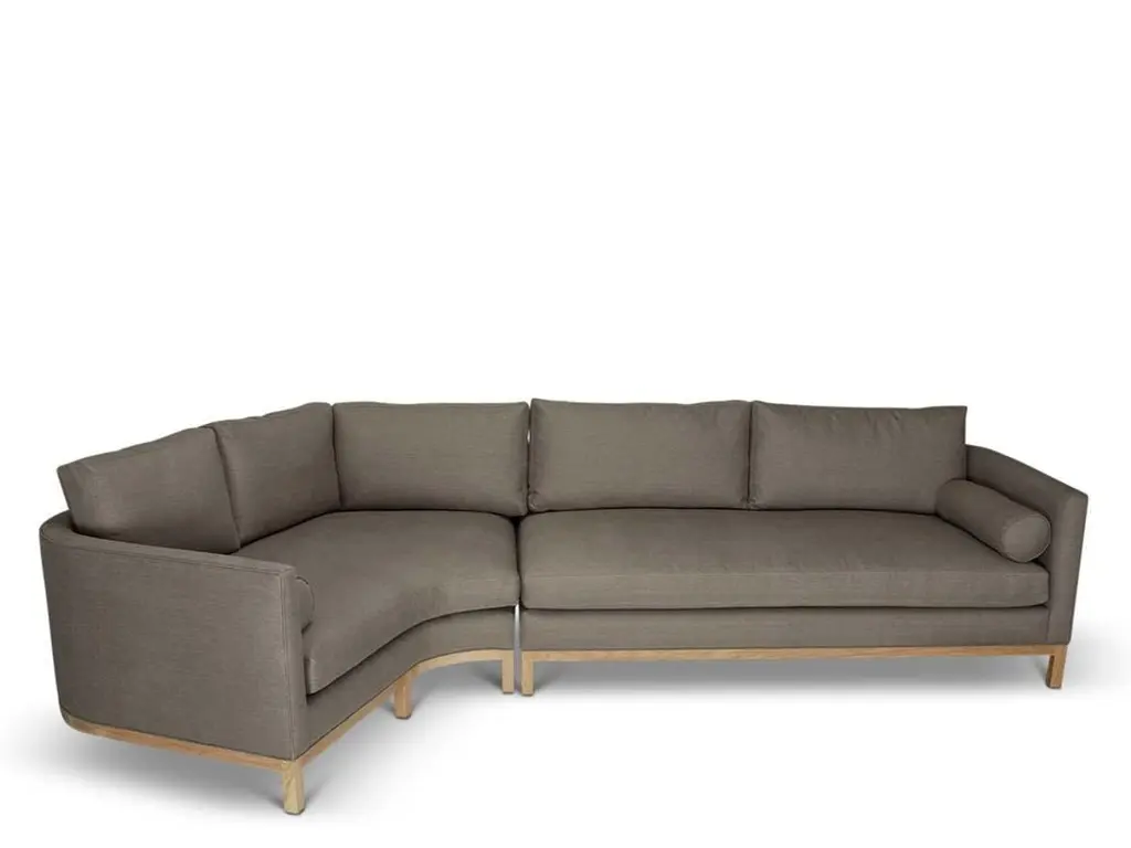 The curved back sectional is a tuxedo style sofa with curved back corners and features down-wrapped, removable seat and back cushions and two bolsters. Can be made with a white oak, American walnut, or metal base.The Lawson-Fenning collection is designed and handmade in Los Angeles, California. Reach out to discover what options are currently in stock.