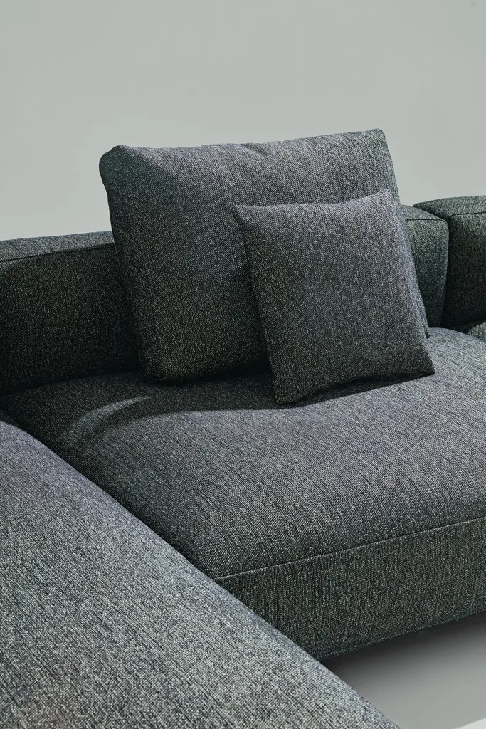 Many different upholstery materials availableDimensions: 431 W x 330 D x 65 H cmSeat height: 36 cmMonobloc sofa and pouf. Graphite painted steel feet. Wooden frame. Elastic strips suspension. Seat upholstered in graduated polyurethane/Dacron Du Pont with quilted insert of 100% pure goose feathers. Backrest and armrests upholstered in graduated polyurethane/Dacron DuPont with quilted insert of 100% pure goose feathers and polyester fiber flakes. Fixed internal nylon cover. Removable external cover in fabric or leather.