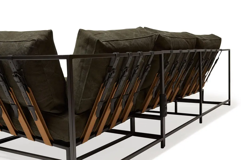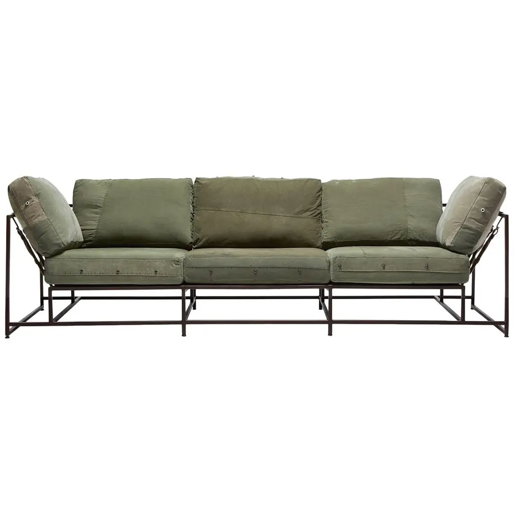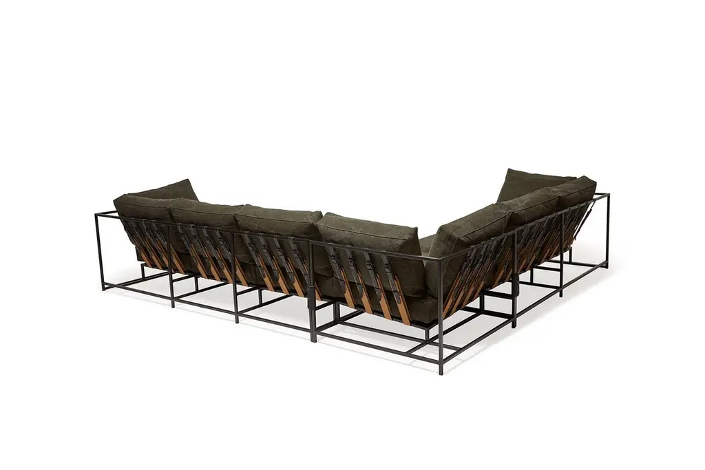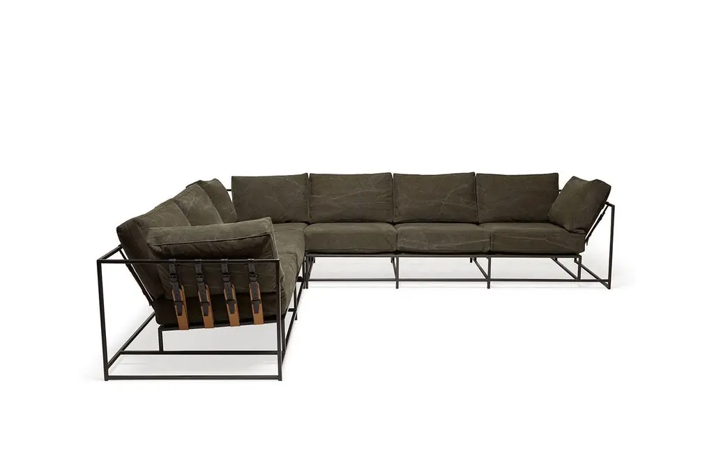 Dark Olive Heavy Canvas And Blackened Steel Large Sectional