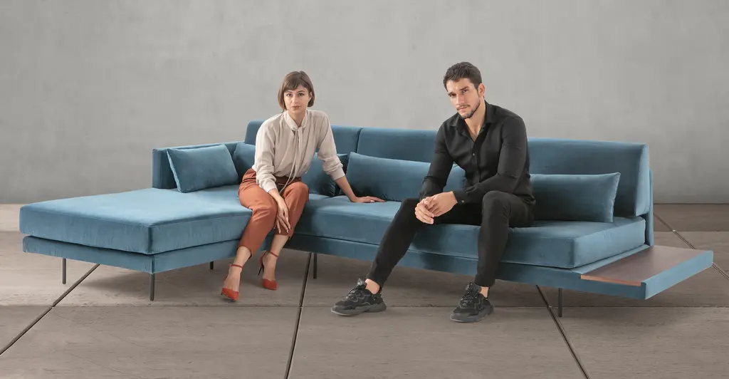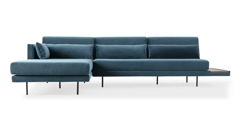 This retro-inspired design was built on a real walnut veneer platform. The Davenport Sofa Sleeper in this gorgeous sofa chaise sectional is the perfect modern configuration. We love the sleek American Walnut side-table in-laid into the frame. Sink into the spacious deep seat during the day. Remove the back cushion and you have a comfy sleeping surface for the unexpected evening guest. Davenport is a modern design marvel for hosts without the most space.