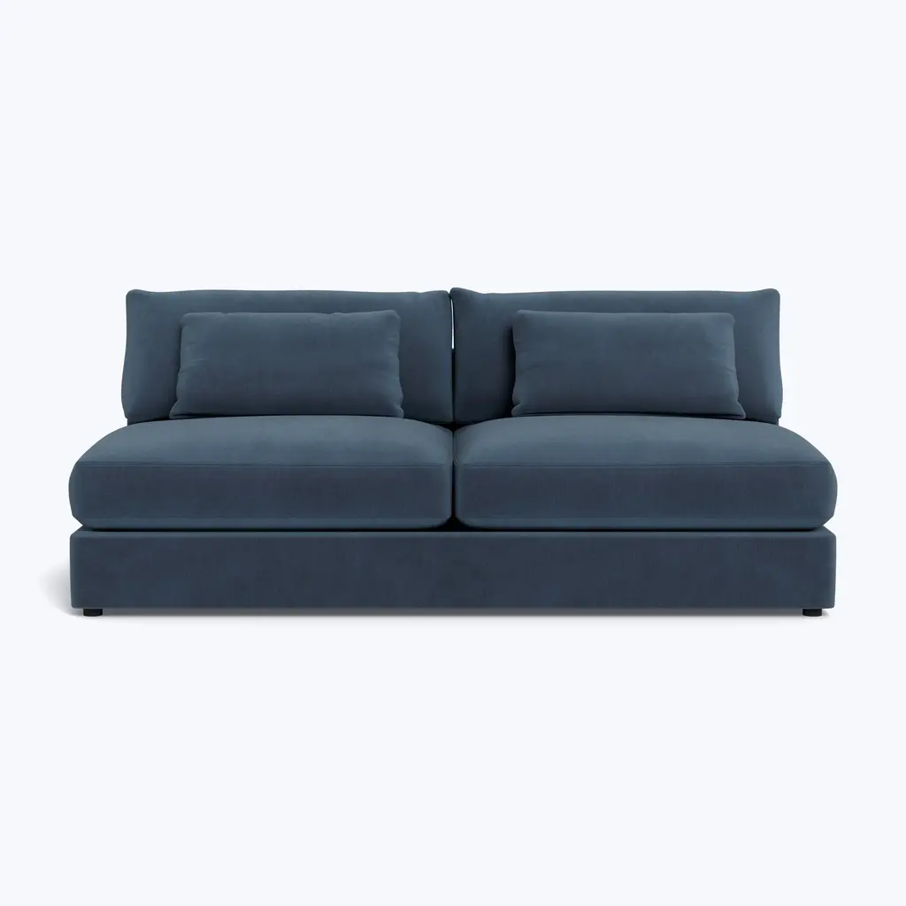 Sink into unparalleled comfort with the Delancey Armless Sofa, exclusively from ABC Carpet & Home. Whether it’s adding a statement to your living room, den, or bedroom, or serving as an extension to your Delancey Sectional, this armless sofa offers deep seating and plush cushions for a luxurious, cozy experience in any space.Resting on a sleek floating base, the Delancey Armless Sofa is designed for ultimate comfort with its blend-down cushions—a luxurious combination of foam and feather-down, meticulously cleaned to hypoallergenic standards. Whether you're using it to relax on its own or incorporating it into your sectional for additional seating, this armless sofa provides unmatched comfort and versatility. Crafted from sustainably sourced wood adhering to ABC's Goodwood Standards, this piece ensures both style and environmental responsibility.Customize your Delancey Armless Sofa with over 80 fabric options, including sumptuous velvets, high-performance textiles, and refined blends, to perfectly complement your home. Each piece is handcrafted in the USA and delivered to your door within 8-10 weeks, reflecting exceptional craftsmanship and enduring style.For a complete and cohesive setup, pair it with the Delancey Ottoman, which can serve as additional seating, a footrest, or even a coffee table. The Delancey Armless Sofa invites comfort and sophistication into your home, transforming your space into a cozy sanctuary.