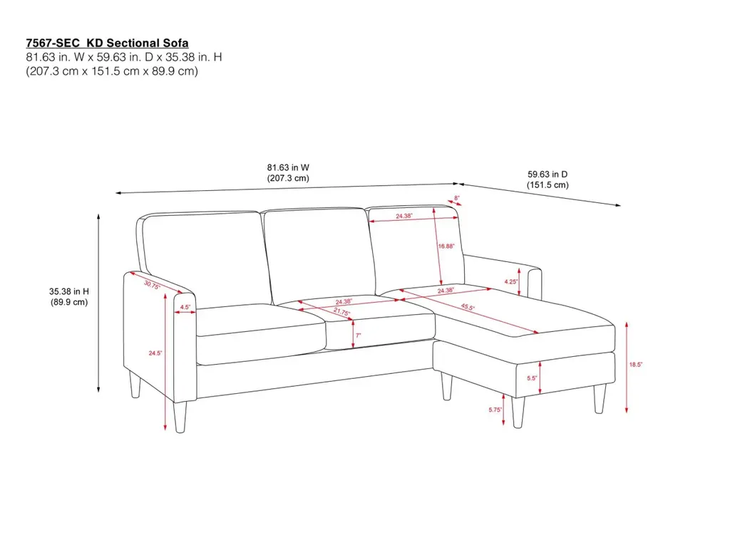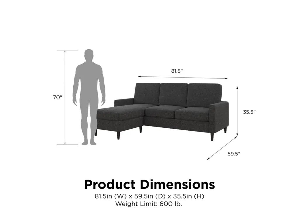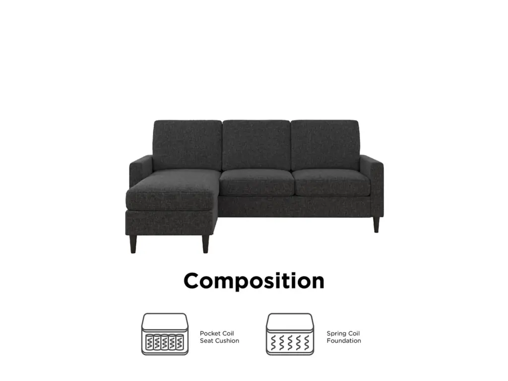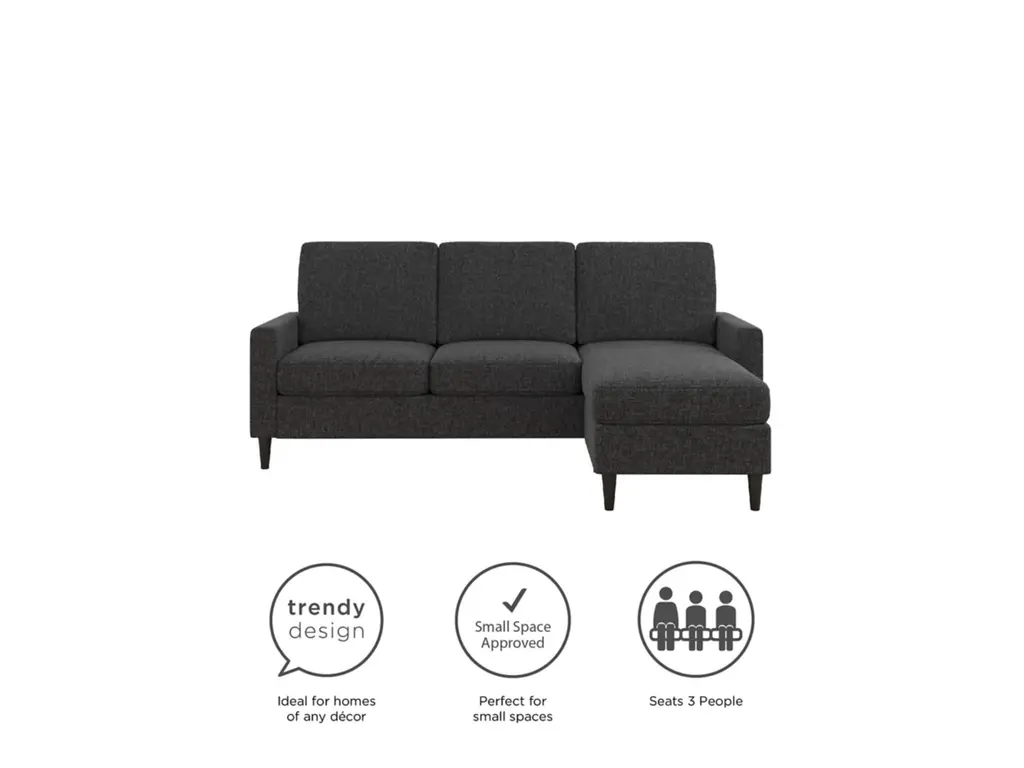 Classic lines and contemporary design make the Dorel Living Regency Sectional a timeless piece for living rooms and seating areas. This small space sectional with an interchangeable chaise is the perfect blend of form and function, with spacious ergonomic seating and generous padding.