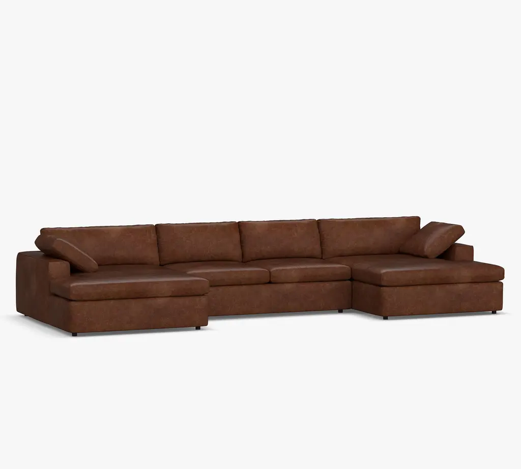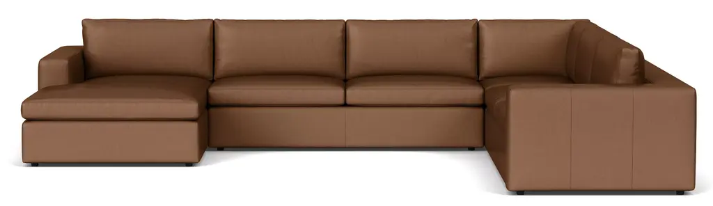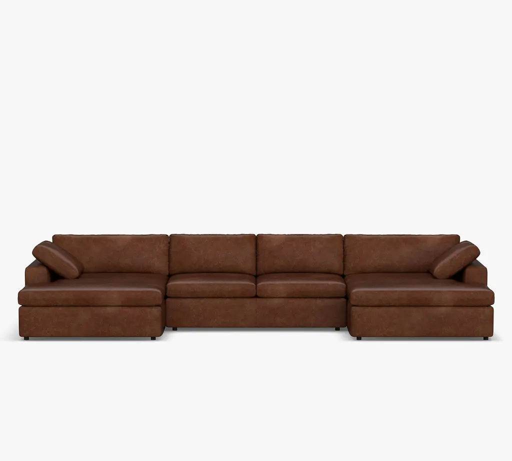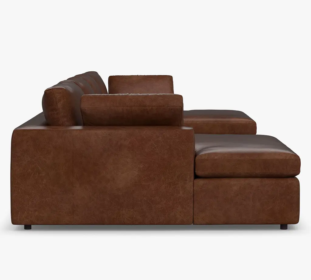 Dream Square Wide Arm Leather U-Shaped Double Wide Sofa Chaise Sectional