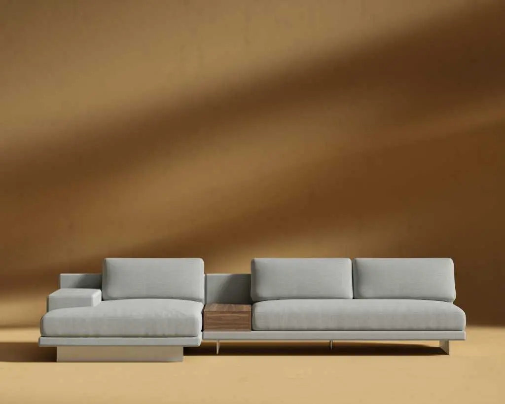 Compelling in its simple yet cutting edge style, the Dresden modular collection is a bold take on contemporary design. The sleek, low profile frame is met with grand cloud-like seat cushions to create the statement making structure. The Dresden also balances the expansive seating with an interchangeable side table insert that is offered in walnut, ash, marble, and white lacquer finishes. Grounded on cast stainless steel legs with an elegant brushed finish, this piece's thoughtful composition demonstrates an exceptional opportunity for modern luxury in your home. See the entire Dresden Collection here.