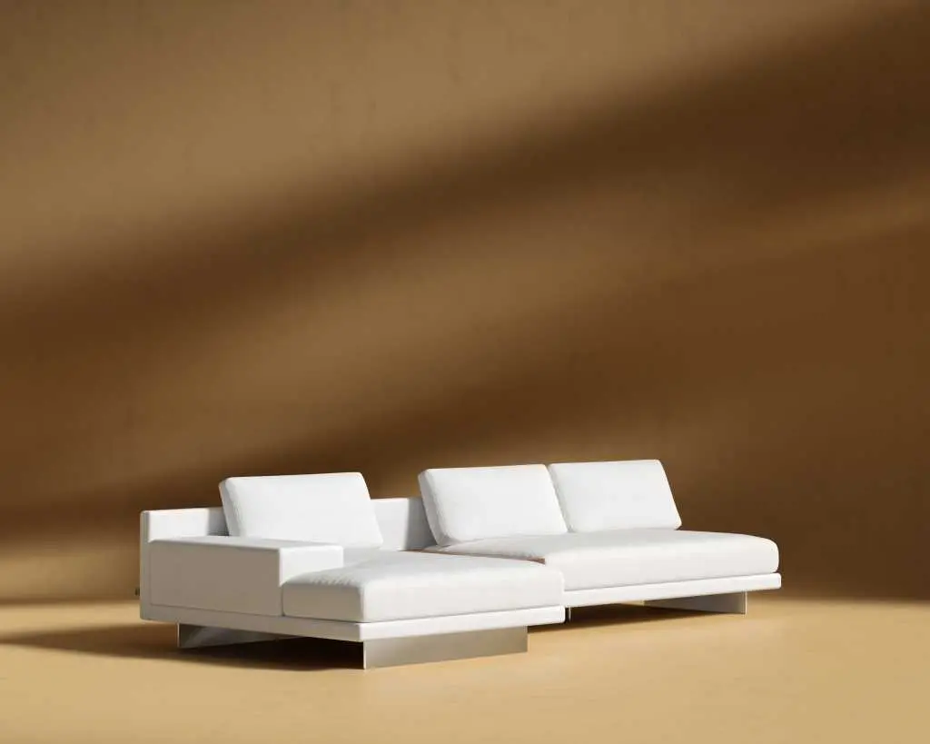 Compelling in its simple yet cutting edge style, the Dresden modular collection is a bold take on contemporary design. The sleek, low profile frame is met with grand cloud-like seat cushions to create the statement making structure. The Dresden also balances the expansive seating with an interchangeable side table insert that is offered in walnut, ash, marble, and white lacquer finishes. Grounded on cast stainless steel legs with an elegant brushed finish, this piece's thoughtful composition demonstrates an exceptional opportunity for modern luxury in your home. See the entire Dresden Collection here.