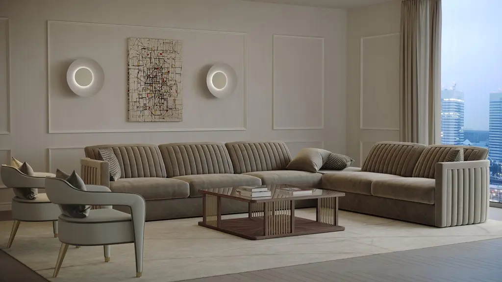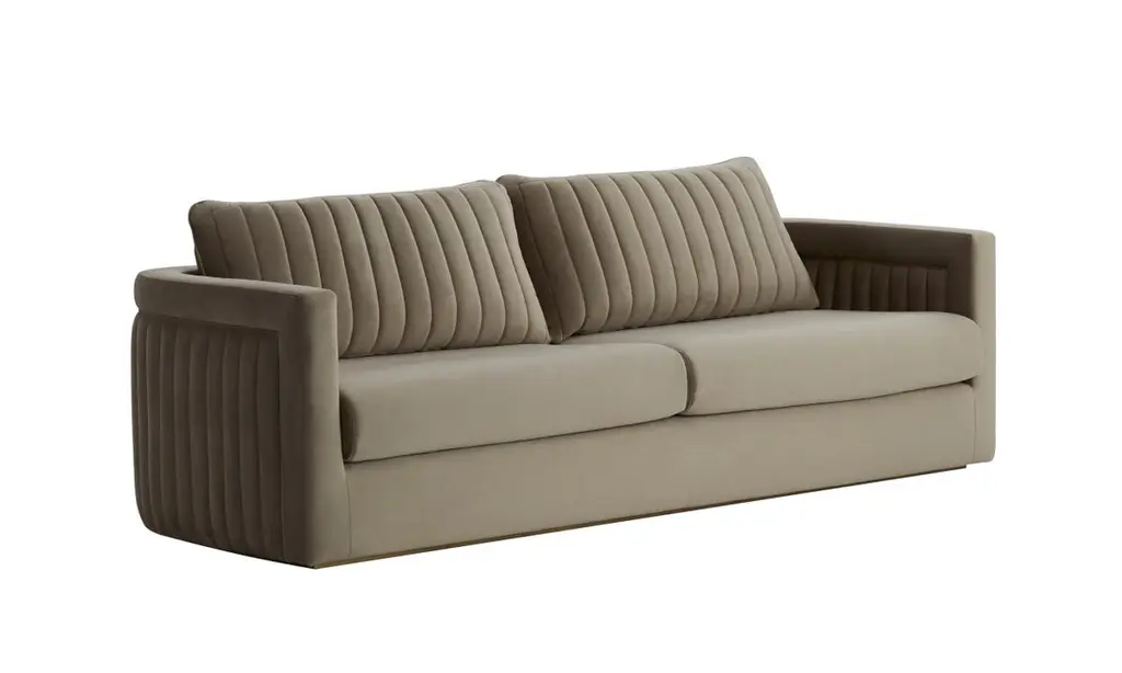 Drummond Modern Sofa With Back Quilting And Brass Color Plinth