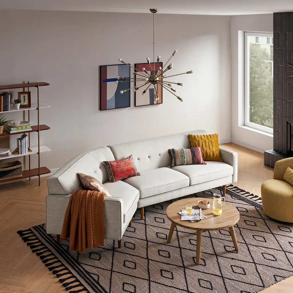 Clean lines and a sleek silhouette make Elias a classic mid-century modern option. Lean back and unwind on tufted back cushions.