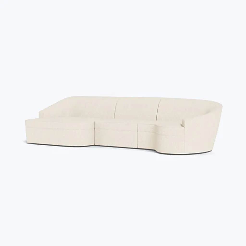 Experience pure comfort and modern elegance with the Elise Three-Piece Sectional, exclusively from ABC Carpet & Home. With its graceful, curved silhouette and rounded profile, this sectional reflects the organic beauty of nature while providing ample seating for any living room or lounge space. Designed for both relaxation and stylish entertaining, the Elise Sectional creates an inviting atmosphere where form meets function.Select from over 80 customizable fabric options, including luxurious velvets, soft linens, and durable performance textiles, to design a sectional that perfectly complements your personal style. Handcrafted and made to order, the Elise Sectional is delivered to your home within 8-10 weeks, offering the perfect blend of timeless design, sustainability, and comfort.