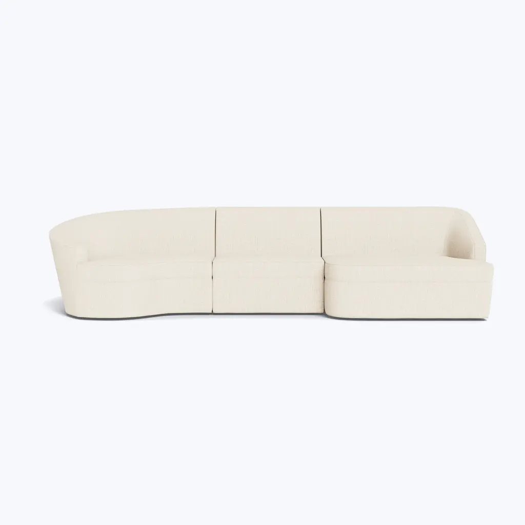 Experience pure comfort and modern elegance with the Elise Three-Piece Sectional, exclusively from ABC Carpet & Home. With its graceful, curved silhouette and rounded profile, this sectional reflects the organic beauty of nature while providing ample seating for any living room or lounge space. Designed for both relaxation and stylish entertaining, the Elise Sectional creates an inviting atmosphere where form meets function.Select from over 80 customizable fabric options, including luxurious velvets, soft linens, and durable performance textiles, to design a sectional that perfectly complements your personal style. Handcrafted and made to order, the Elise Sectional is delivered to your home within 8-10 weeks, offering the perfect blend of timeless design, sustainability, and comfort.