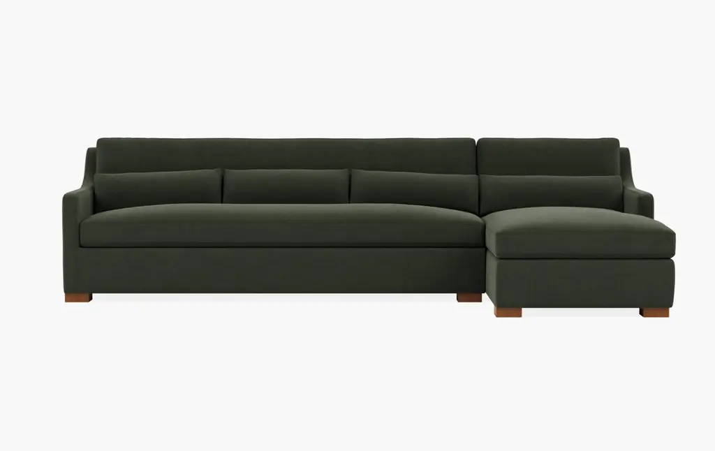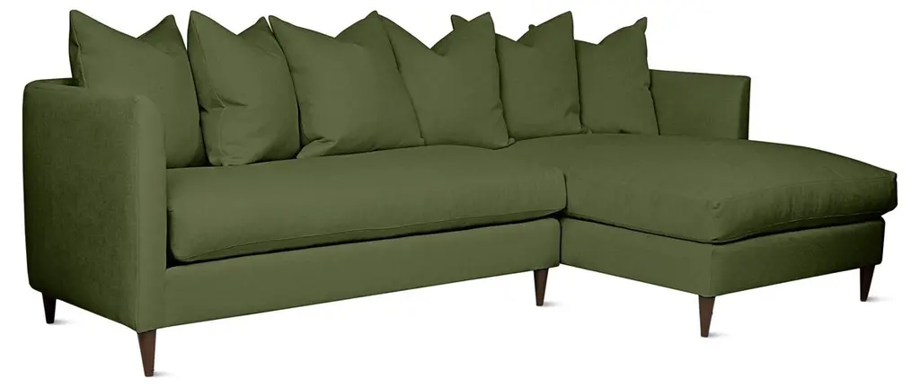 A modern take on a classic design. Ella's frame wraps an ultra-comfortable seat with long, graceful lines for elegant yet approachable appeal. From the soft curves of Ella's slope arms to bench cushions on the back and seat, it's a sectional that can be dressed up or down in any space. Lumbar pillows add style and support, while a minimal block leg keeps the focus on Ella's sophisticated silhouette. Cushions can be upgraded for extra softness and full reversibility. *Lumbar pillows shown in image above are included. Right or left chaise, which to choose? It all depends on the layout and traffic pattern of your space, and we recommend placing the chaise on the side with less traffic. The difference between a right and left chaise? Imagine you're standing in front of your sectional, facing it directly. A right chaise will be on your right side and a left chaise will be on your left.