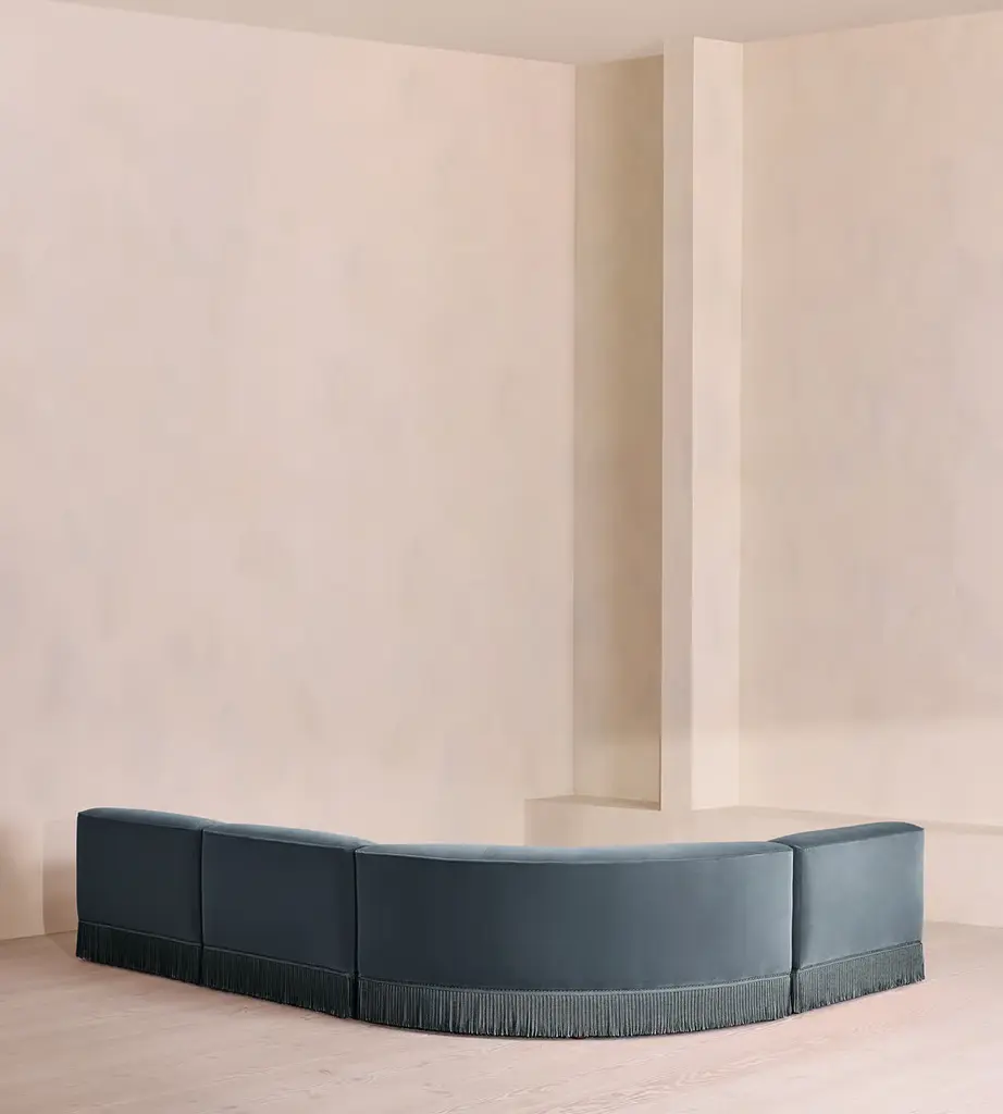 A fully upholstered sectional style with tonal fringing, piping and button detailing. Our Elowen L-shaped sofa features fixed backrests and seat cushions. The tassel fringe and tufted buttons complete the velvet upholstery, which is available in a range of bespoke shades.