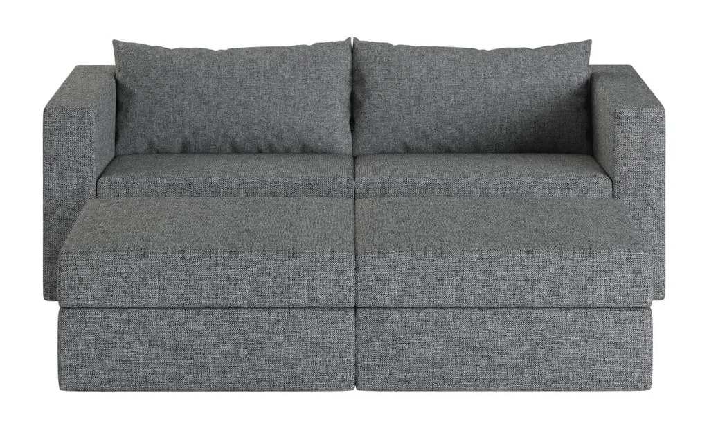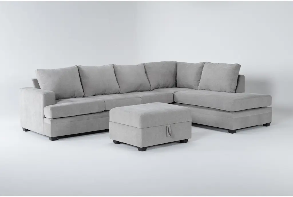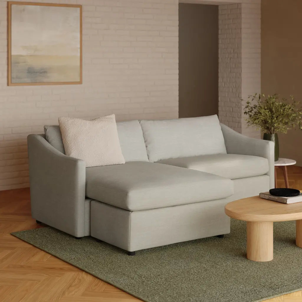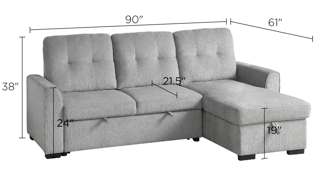 Customizable for your casual living room's available space, the Ember 2-pc. Reversible Sectional w/ Sleeper functionality goes beyond that of a traditional sofa. Covered in light gray chenille, the transitional profile of this seating group is complemented by stitch tufting and track-style arms. Conveniently stored beneath the sofa is a pull-out trundle that rises to create a bed while the top of the attached chaise opens to reveal under-seat storage. The chaise can be configured as right or left side placement based on the needs of your space.