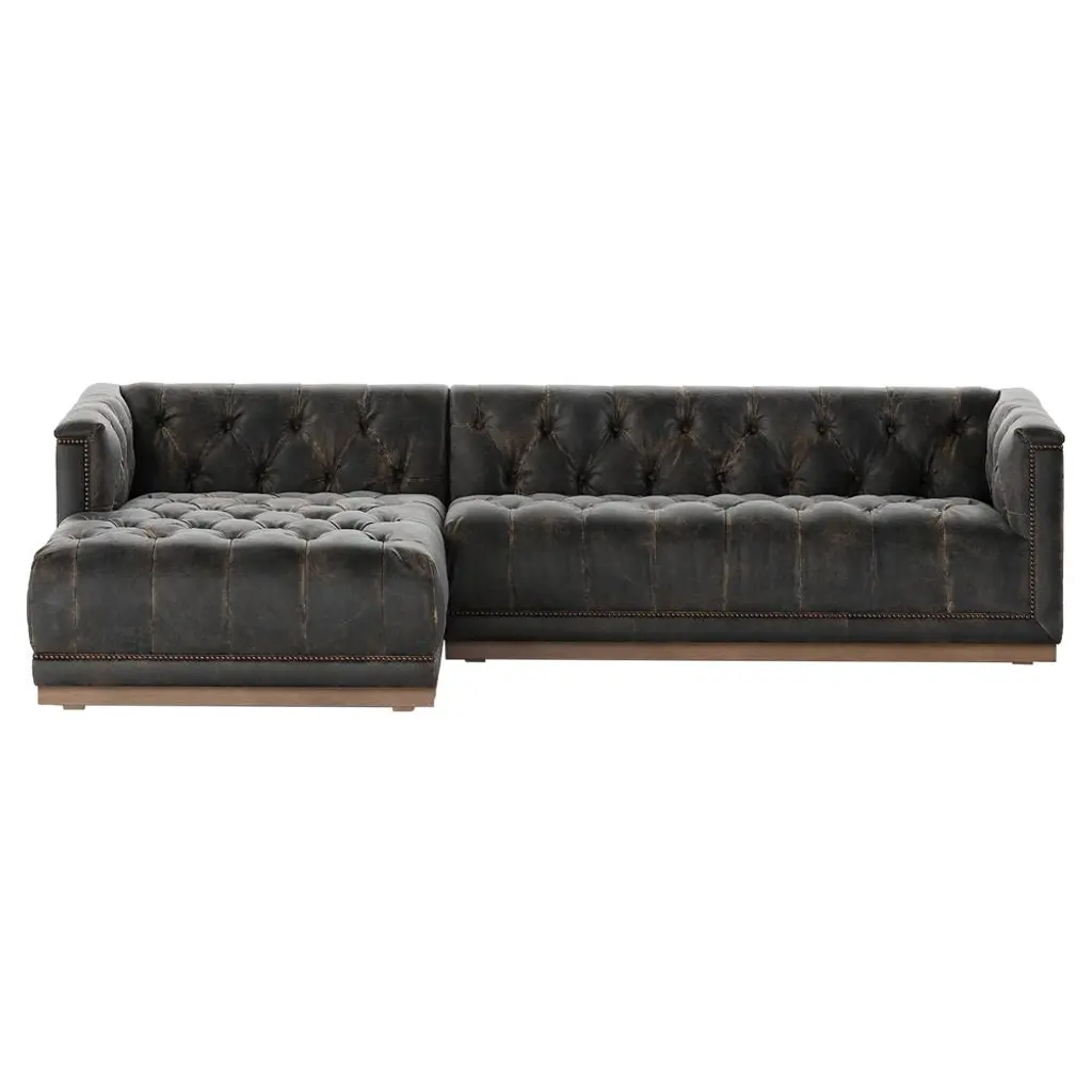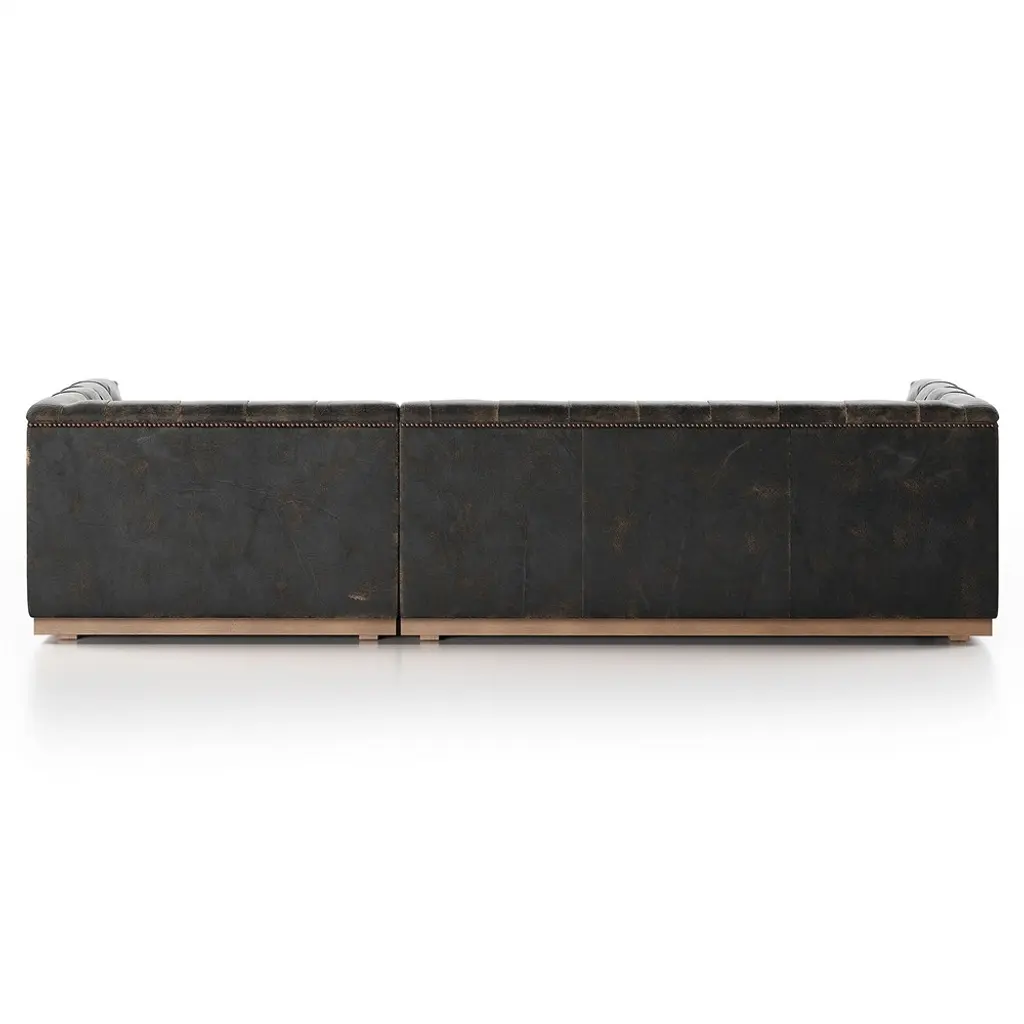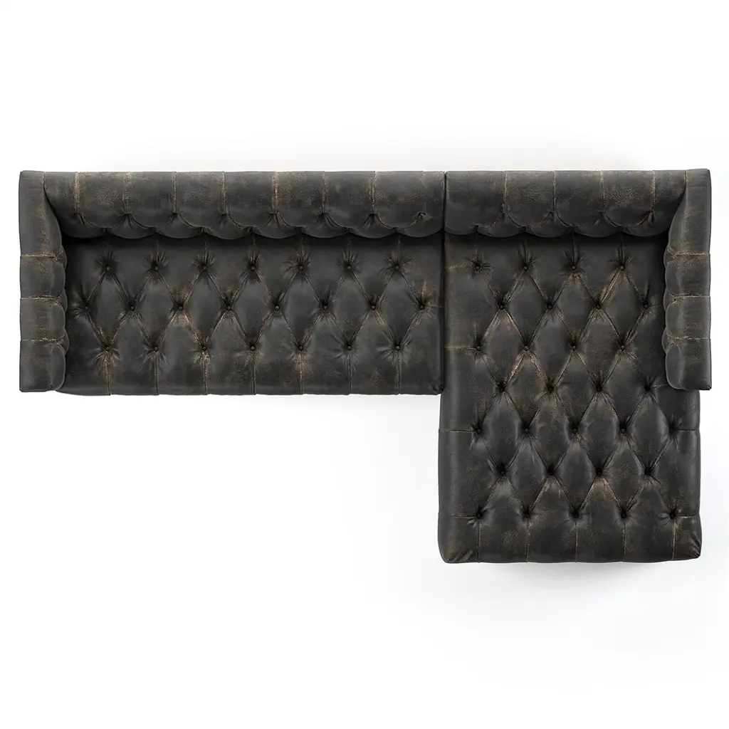 Emmy Rustic Vintage Black Leather Sectional - Right Arm Facing - 109"w X 62"d