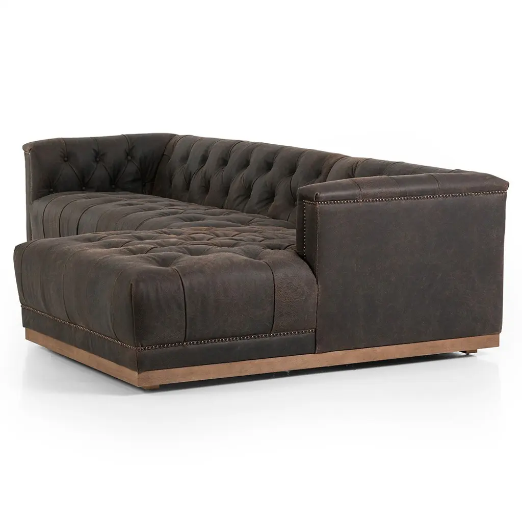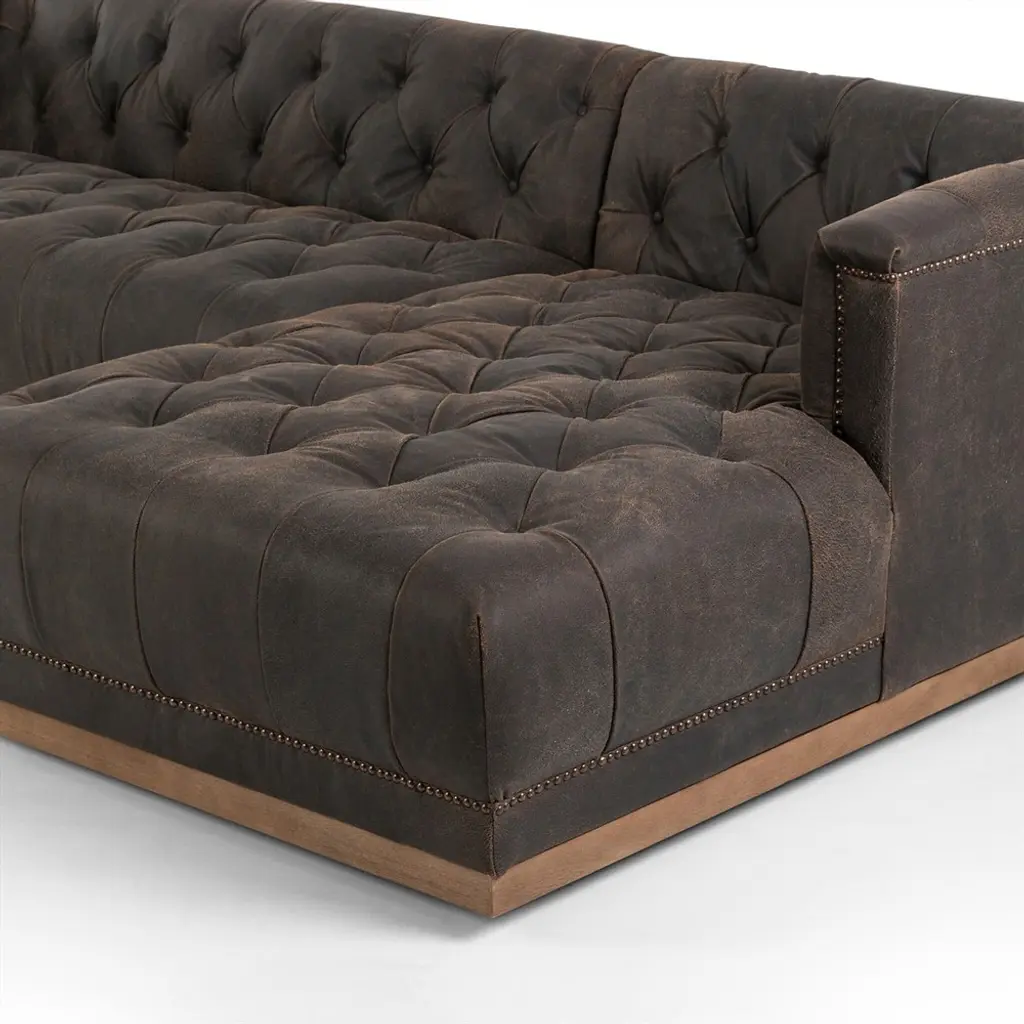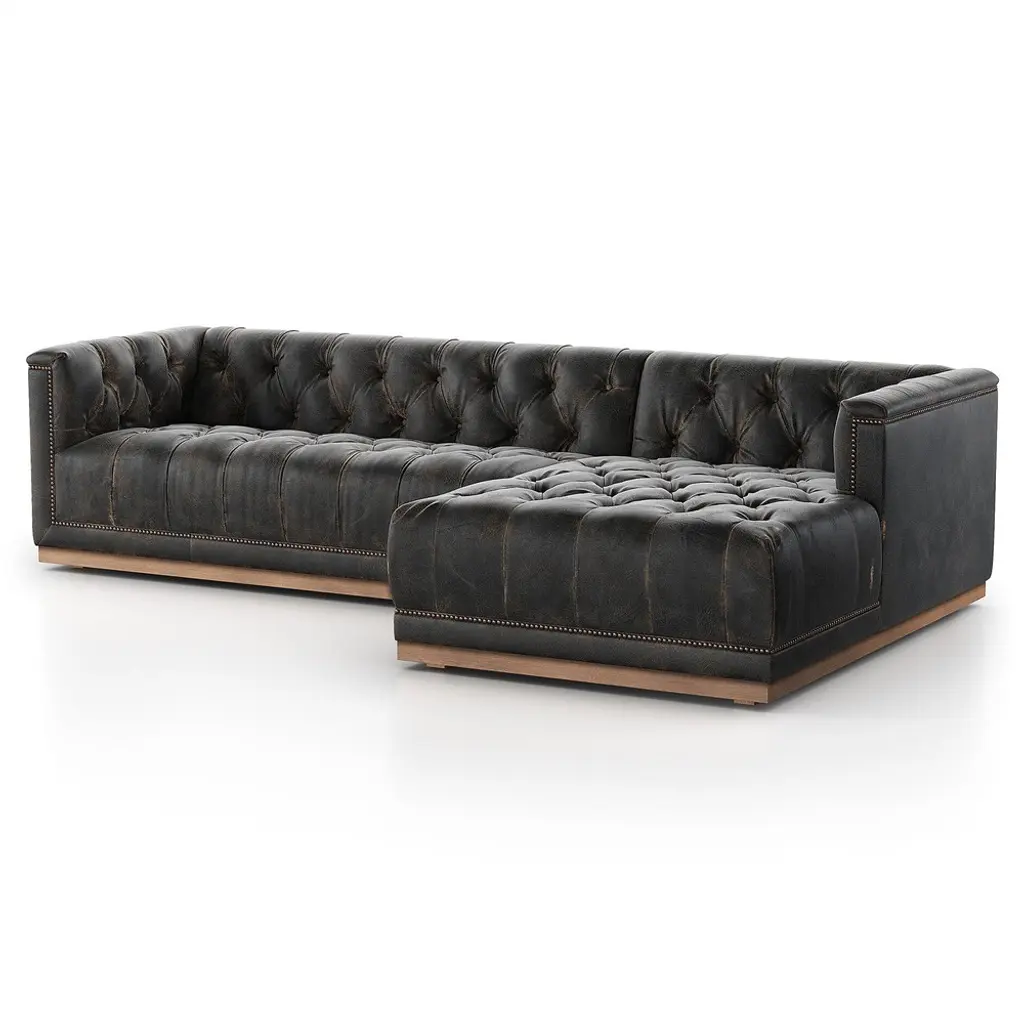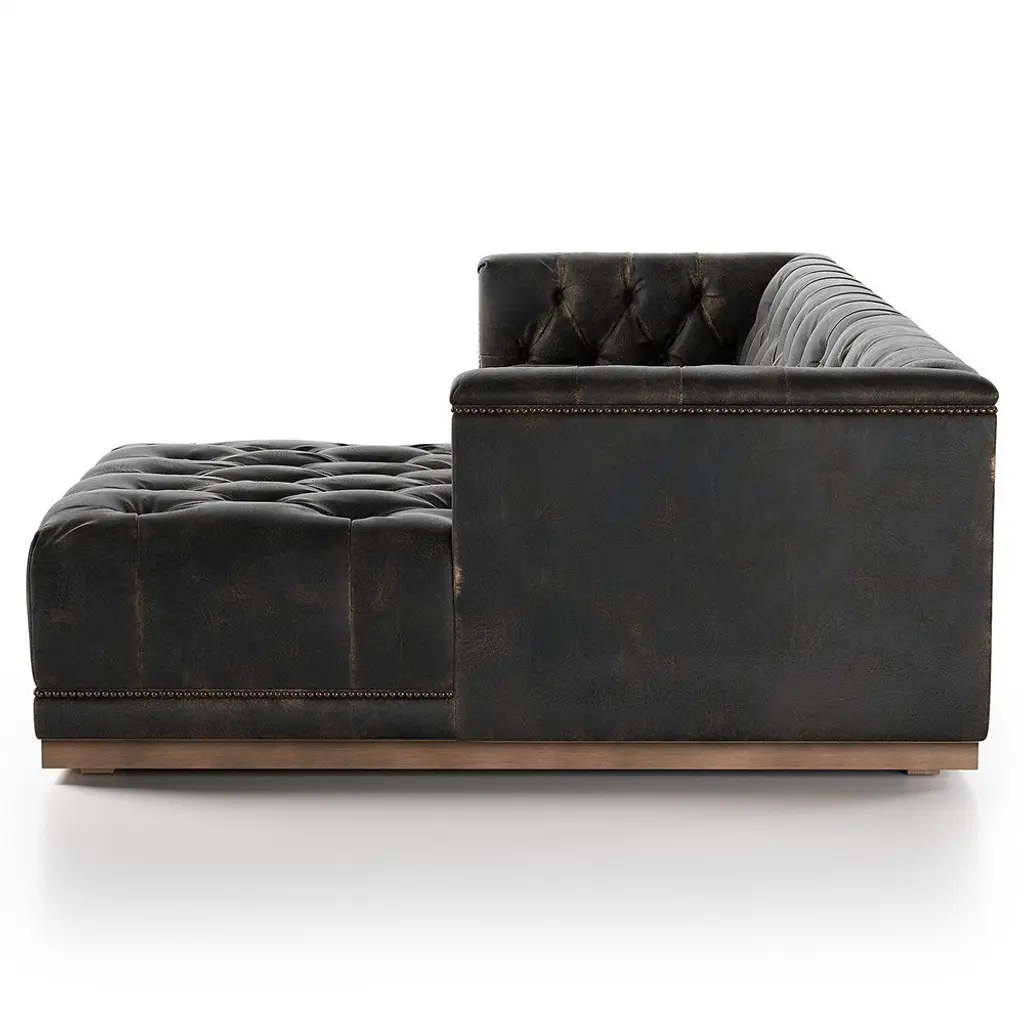 Emmy Rustic Vintage Black Leather Sectional - Right Arm Facing - 109"w X 62"d
