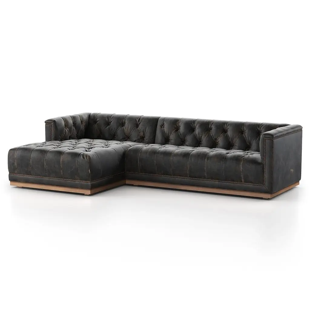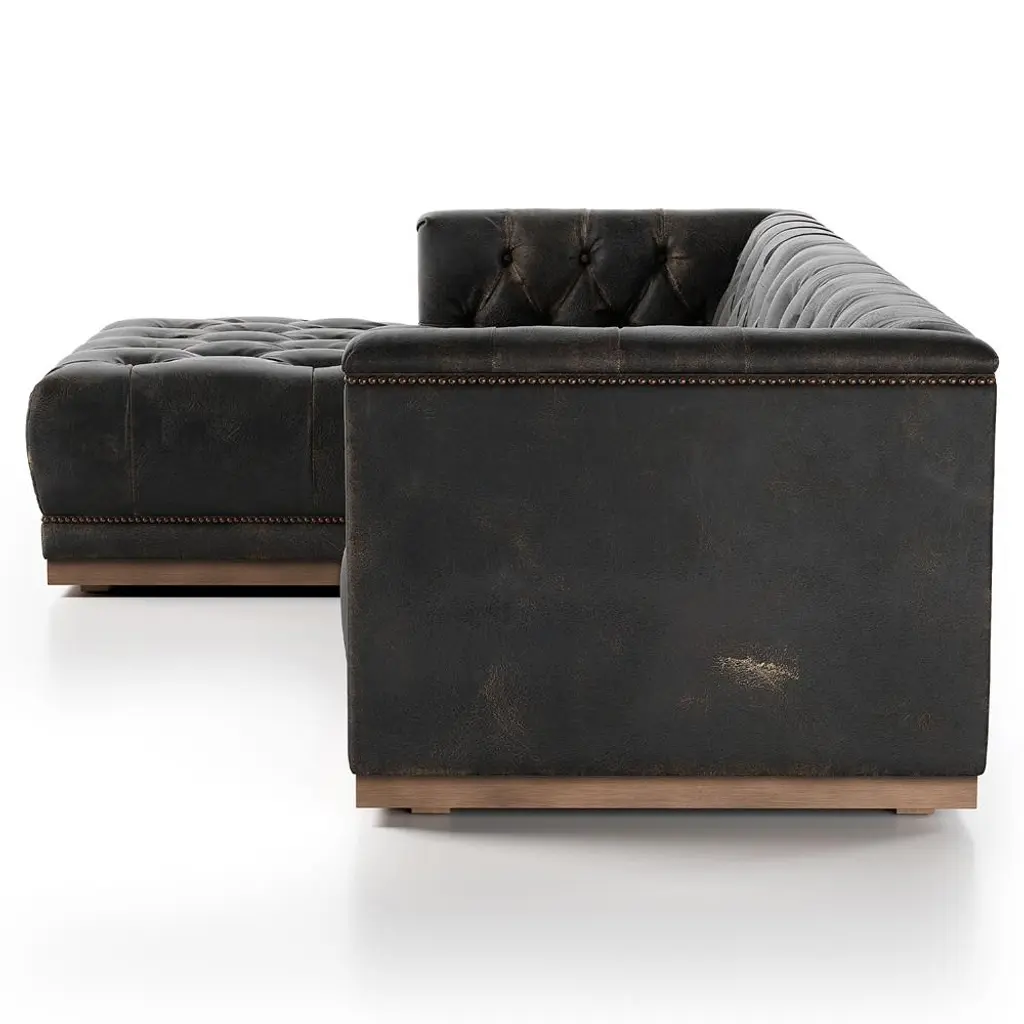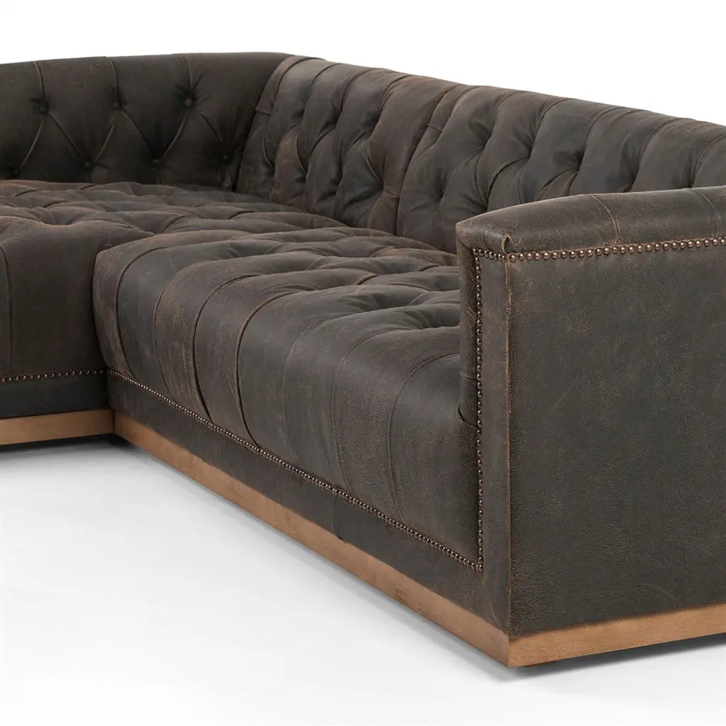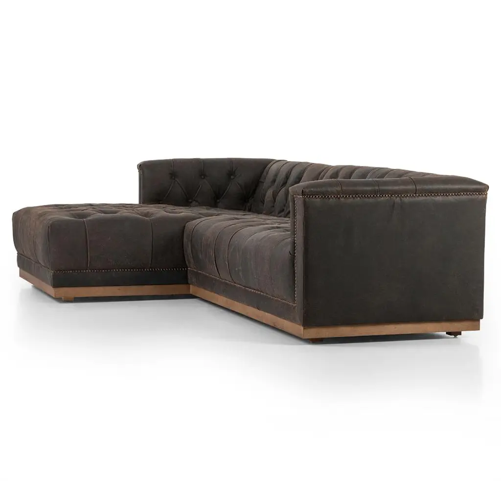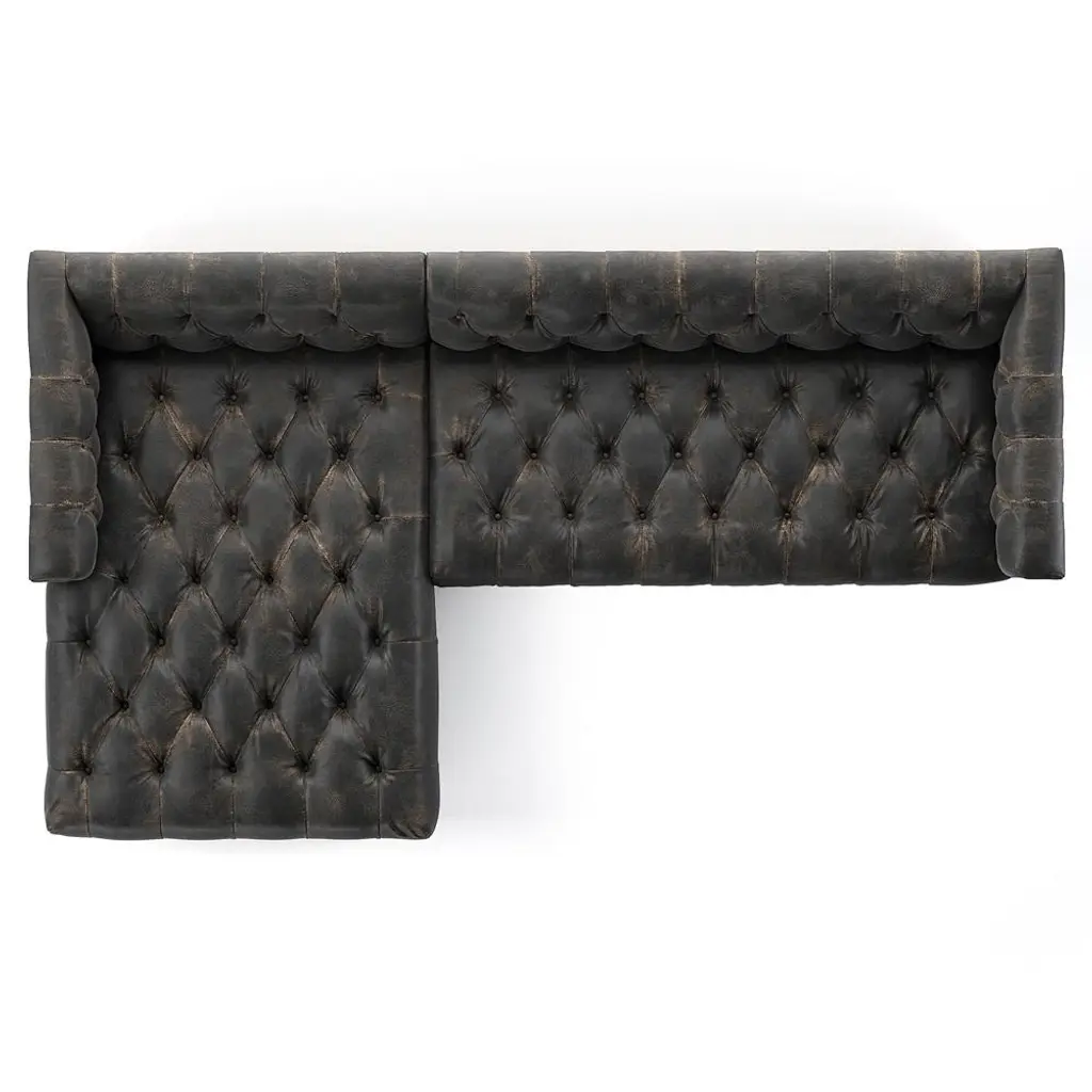 Emmy Rustic Vintage Dark Brown Leather Sectional - Left Arm Facing - 109"w X 62"d