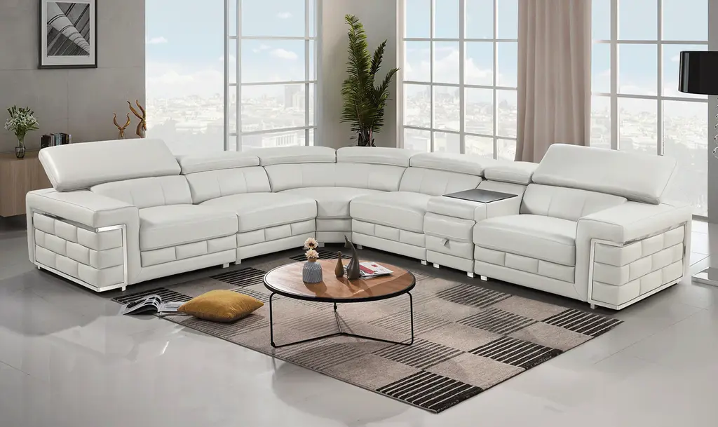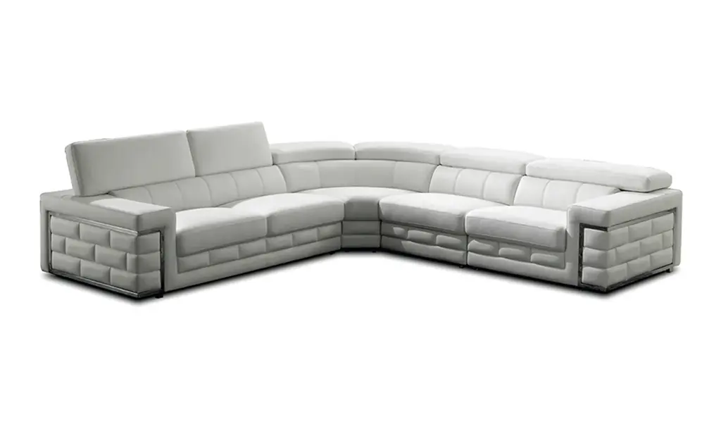 Esf Italia Enamor L-Shaped Silver Leather Sectional Sofa With Adjustable Headrests