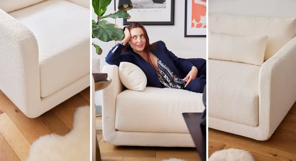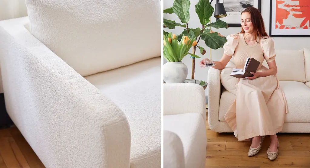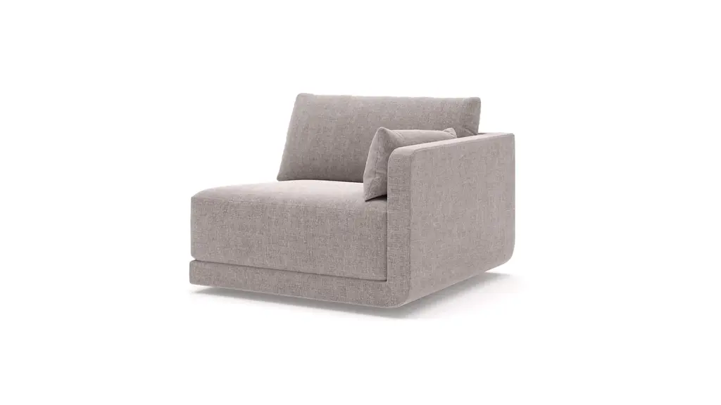 DESIGN Arrange, rearrange, and repeat. Eva's modular pieces are designed to fit together to create the perfect configuration for any space. Plush deep seat cushions, casual pillowy-soft back cushions, and canted seat and back construction make Eva our most comfortable sit yet. Sculptural and cozy proportions effortlessly strike the balance between formal and lounge-y. The basis for any sofa or sectional, Eva's one-arm section perfectly caps off your modular design. The lower seat height, canted seat, and full back support offer a modern look that's designed for comfort. Handcrafted in the USA. FEATURES Solid Foundation: Our frames are constructed from precision-cut, FSC-certified engineered wood for unmatched strength and stability, featuring reinforced, interlocking joinery for added durability. Crafted for Coziness & Durability: Foam & fiber cushions offer our most supportive yet comfortable sit with a sleek, tailored look that requires minimal fluffing. These cushions feature high-quality, high-resiliency CertiPUR-US® foam core seats wrapped in premium fiber with fiber-filled back cushions. CertiPur-US® foam is held to the highest standards of product safety and durability, so you can rest easy. Supportive Webbing Suspension: Designed to maximize comfort, our premium webbing system provides a resilient foundation. Customizable Upholstery: Choose from a vast selection of durable premium and performance fabrics and genuine Italian leather to personalize your Eva One-Arm Section's look.