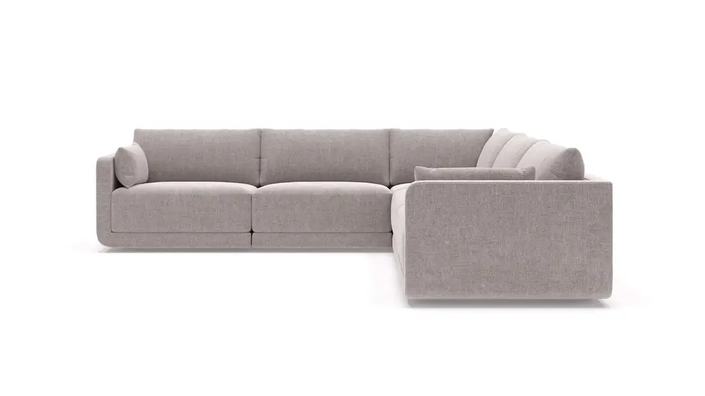 DESIGN Arrange, rearrange, and repeat. Eva's modular pieces are designed to fit together to create the perfect configuration for any space. Plush deep seat cushions, casual pillowy-soft back cushions, and canted seat and back construction make Eva our most comfortable sit yet. Sculptural and cozy proportions effortlessly strike the balance between formal and lounge-y. The lower seat height, canted seat, and full back support offer a modern look that's designed for comfort. Handcrafted in the USA. FEATURES Solid Foundation: Our frames are constructed from precision-cut, FSC-certified engineered wood for unmatched strength and stability, featuring reinforced, interlocking joinery for added durability. Crafted for Coziness & Durability: Foam & fiber cushions offer our most supportive yet comfortable sit with a sleek, tailored look that requires minimal fluffing. These cushions feature high-quality, high-resiliency CertiPUR-US® foam core seats wrapped in premium fiber with fiber-filled back cushions. CertiPur-US® foam is held to the highest standards of product safety and durability, so you can rest easy. Supportive Webbing Suspension: Designed to maximize comfort, our premium webbing system provides a resilient foundation. Customizable Upholstery: Choose from a vast selection of durable premium and performance fabrics and genuine Italian leather to personalize your Eva Sectional's look.