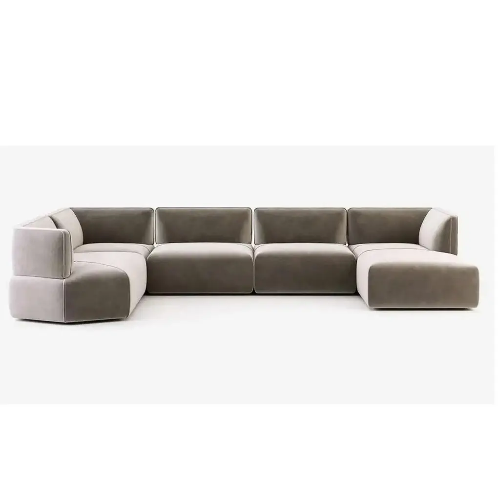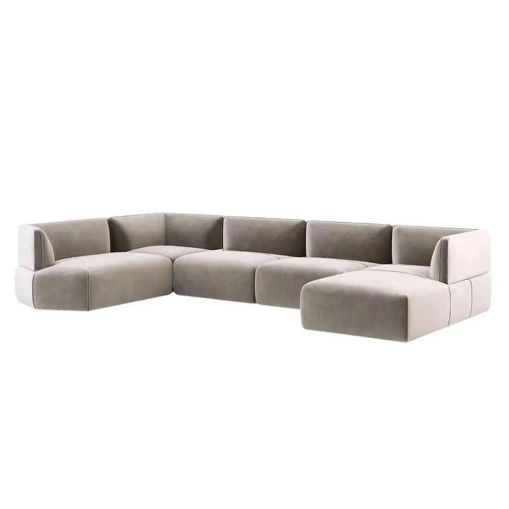 Tailor made and fully upholstered sectional sofa offered in a selection of luxurious, velvet fabrics.Shown with taupe cotton velvet. All hardwood frame with advanced comfort spring suspension. The seat and back cushions filled with premium polyurethane foam with various densities and 100% polyester fiber.Custom sizes and materials available.Clear seat depth is 29 in We will be glad to check with the factory’s technical team if sizes, finishes, and colors can be customized. We do our best to expedite production and to ship and deliver product within the listed lead time, however current lead times might be longer due to global shipping backlog and delays. These delays are out of our control and cannot be a reason to cancel an order.Our pricing includes all costs for international shipping to the U.S., as well as duties and customs clearance fees. Please be aware that local delivery within the U.S. is not included. We offer white glove, front door, and warehouse delivery options. For shipments outside the U.S., kindly reach out to us for a detailed quote.